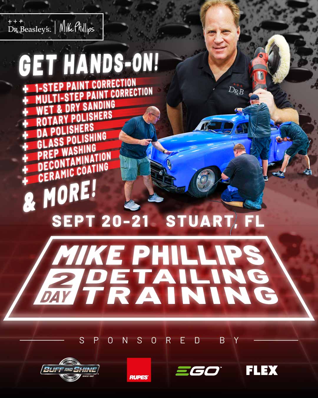 Mike Phillips is a world-renowned detailing expert with over 30 years of teaching experience in the detailing industry. Now Chief Education Officer for Dr. Beasley’s, Mike is bringing his signature detailing classes to Dr. Beasley’s Future of Detailing education program to reach a whole new audience of detailing up-and-comers.Â