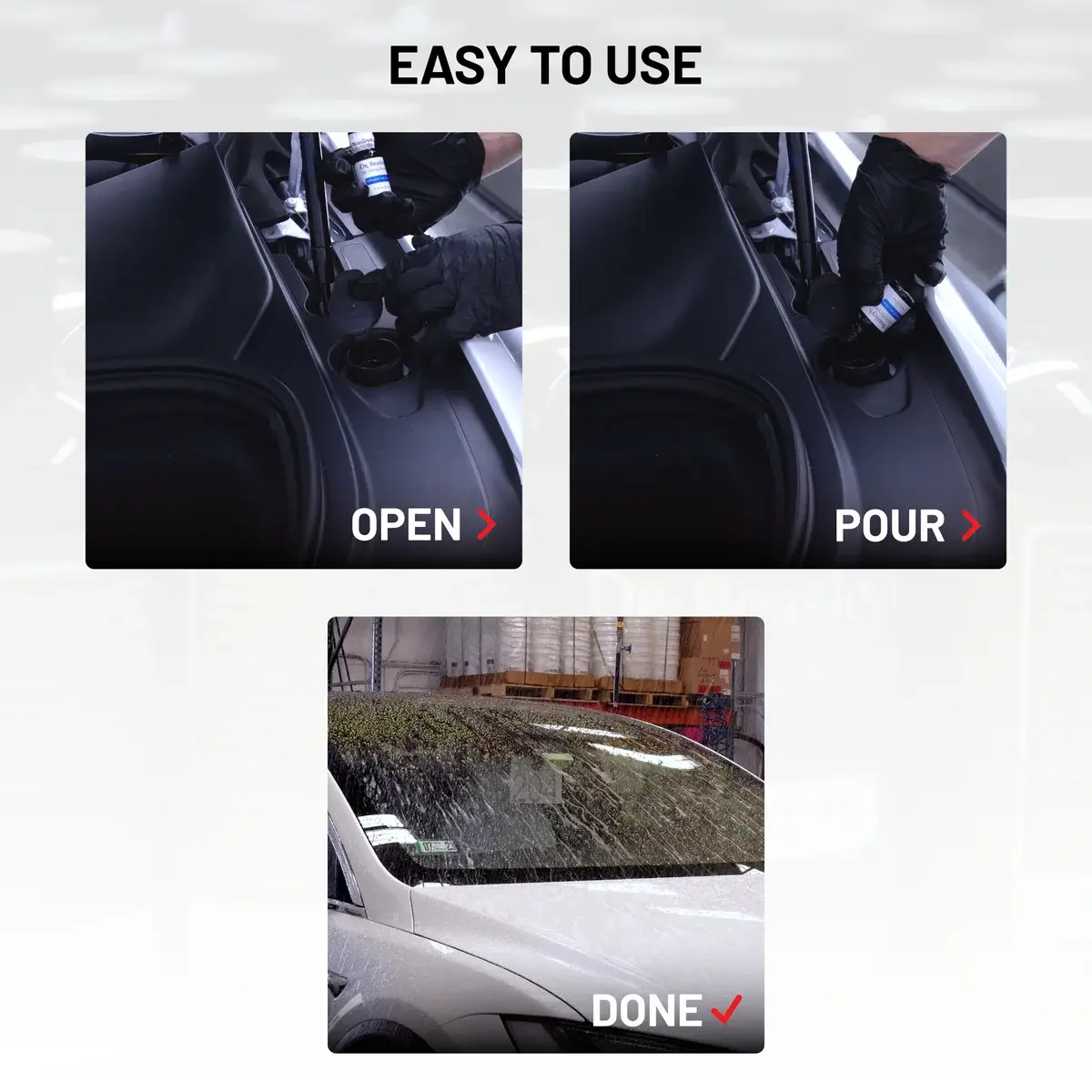 Most maintenance boosters require you to hand apply once every 3 months. With AdvanceCoat: Glass, however, application is as simple as the turn of a switch. That’s because AdvanceCoat: Glass goes in to your windshield wiper fluid reservoir, so whenever you spray your wiper fluid, you’re boosting your coating. Just add a new bottle to your reservoir whenever you add more fluid and your boosting power will be replenished.