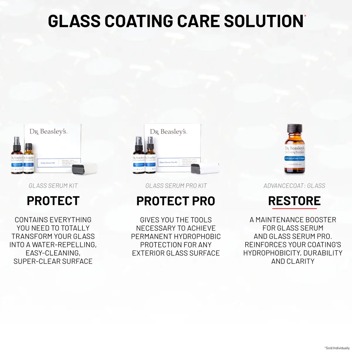 Glass Serum and Glass Serum Pro are both incredibly effective ceramic coatings for your windshield and exterior glass. But like any other part of your car, they require proper maintenance to keep them performing at a high level. AdvanceCoat: Glass gives you the power to practice that maintenance through its concentrated blend of ceramic ingredients that restore water beading properties, strengthen durability and improve visual clarity. You deserve the full potential of your coating’s abilities – and AdvanceCoat: Glass can help unlock them..