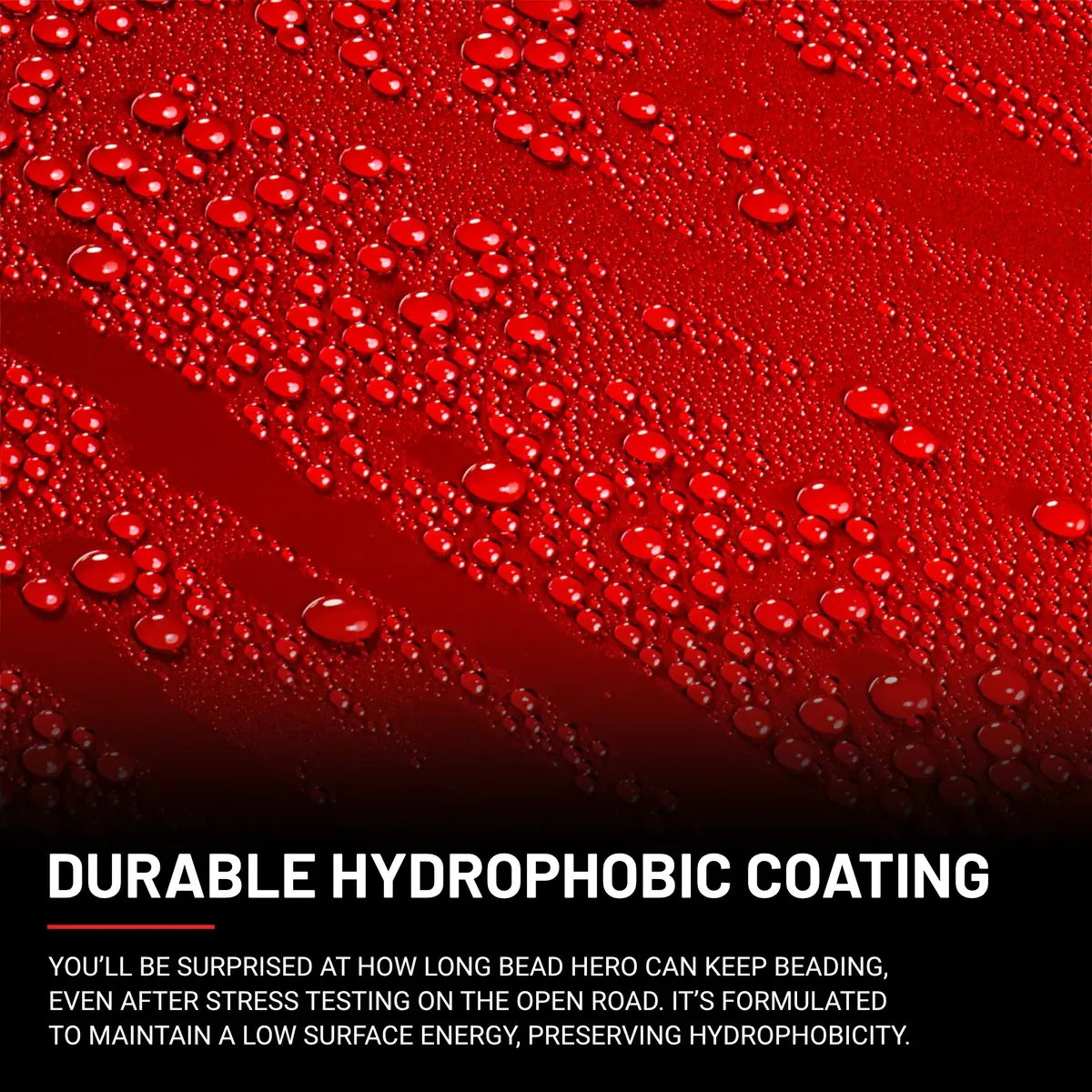 You’ll be surprised at how long Bead Hero can keep beading, even after stress testing on the open road. It’s formulated to maintain a low surface energy, preserving hydrophobicity.