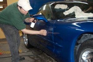 The process of refreshing and restoring the exterior paintwork of a car can be quite extensive. As an example, I’ll be briefly walking you through the process on a blue Corvette that we detailed at our sister company, Simon’s Shine Shop. Using only the highest quality products, an outline such as this is essential in learning to preserve and promote your car’s beauty.