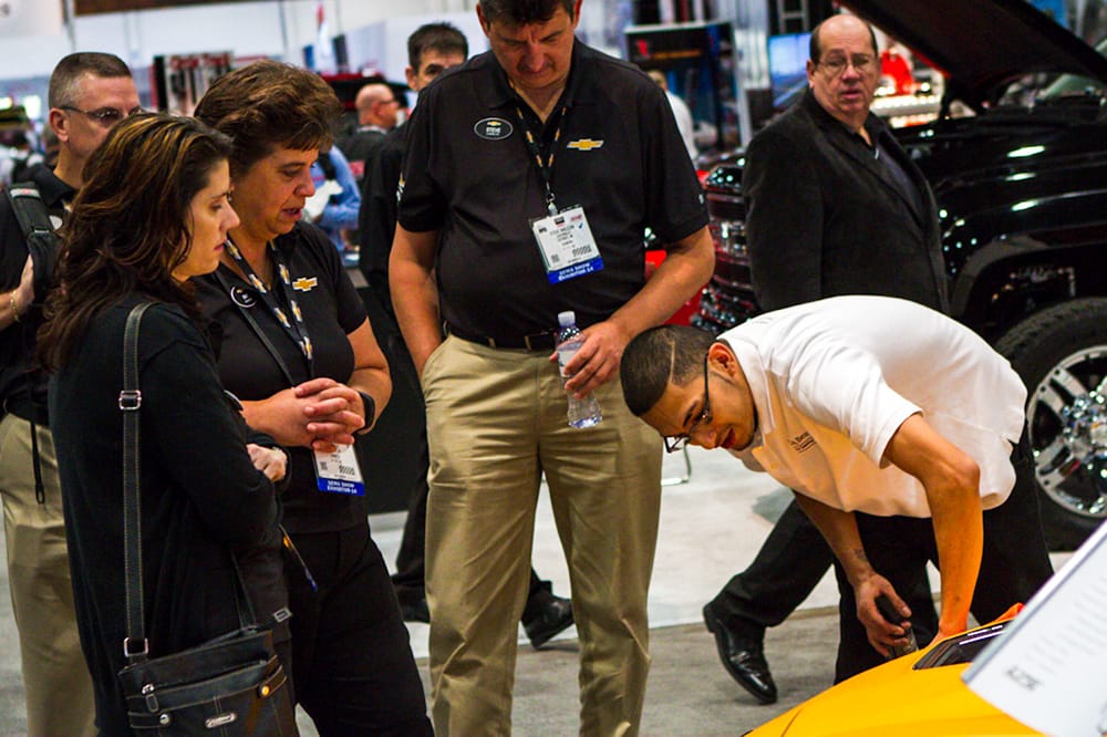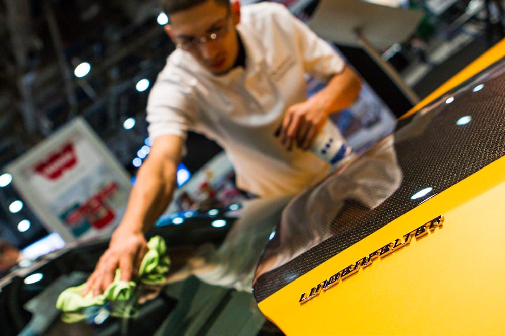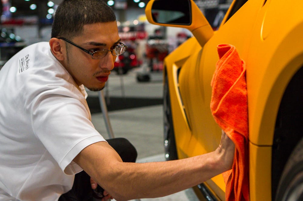 For all of you who haven’t heard, last week was the 2014 SEMA Show. It was fantastic! We had a booth in the North Hall. We saw lots of friends and met lots of new people. The Dr. Beasley’s brand and Behind the Detail blog have been growing steadily over the years. This year especially we had the opportunity to sponsor and detail some cars at the show that were an absolute pleasure! The first set of photos here is of a matte orange/yellow Corvette in the AkzoNobel booth. They had brought this car to the show and had no one to detail it while it was there. Undoubtably, it received a lot of attention. And with all that attention it got pretty dirty with fingerprints, dust, and smudges. That’s when they reached out to us at our booth to test out or products. They saw our demo we were doing of Matte Final Finish and Matte Paint Sealant. After of which they asked us to come use the products on their Corvette. We did and it looked great after! So good in fact that we went back three times during the show to clean it up!