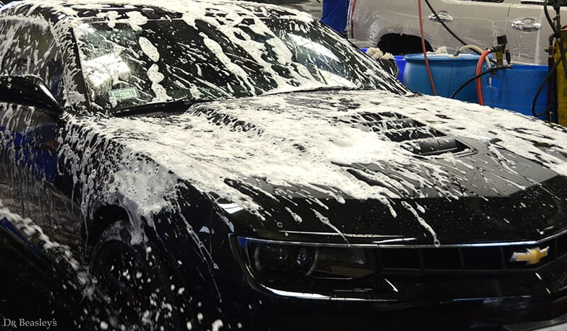 - After washing & rinsing the car, DON’T dry it! You’ll need the vehicle to be wet for the next step.