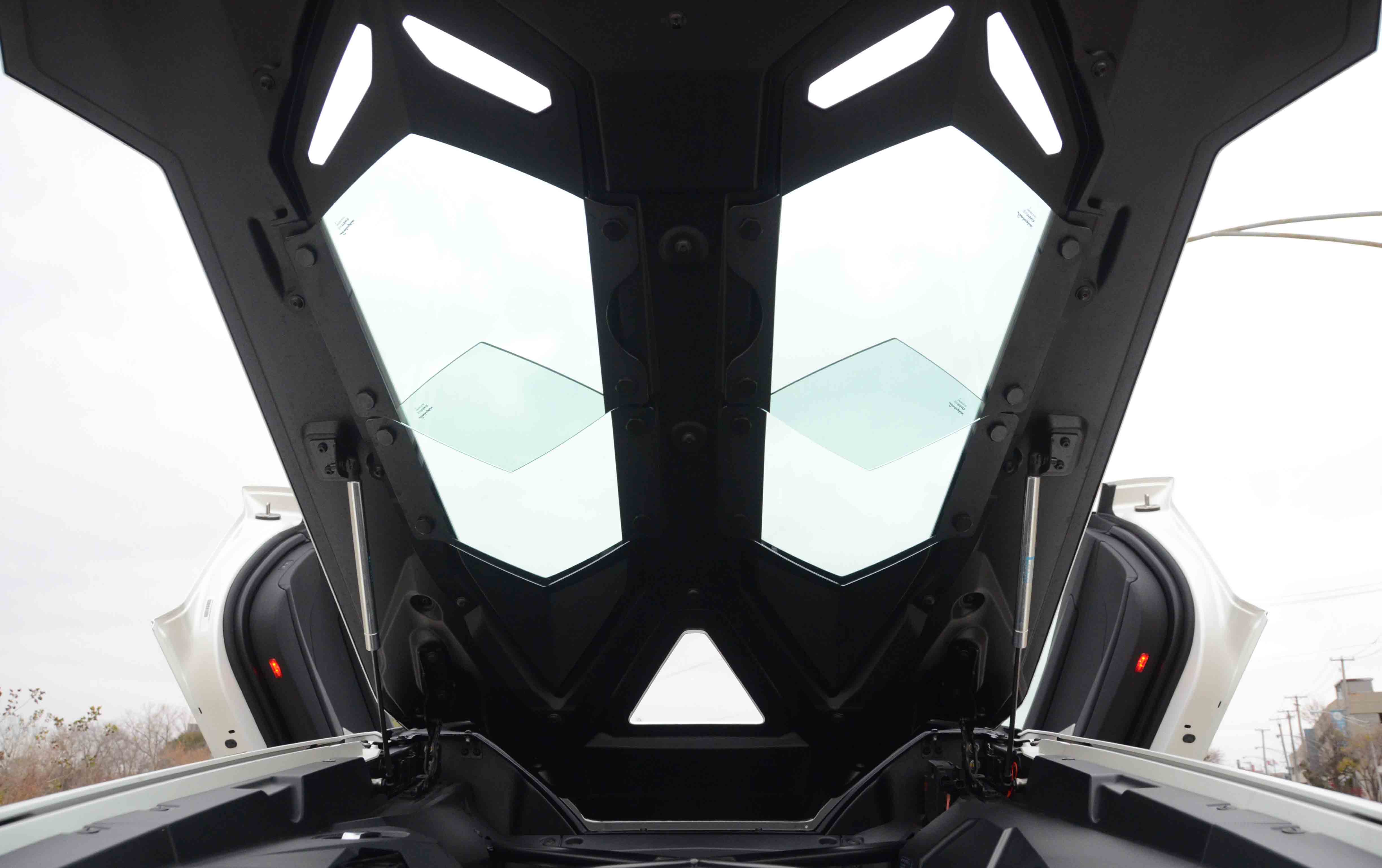 Being inside this machine feels like you’re sitting in a spaceship. The seats are tucked low into the interior, finished with simple and classic black leather. Driving the car is like being enveloped in it; you feel one with the vehicle.