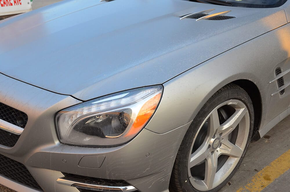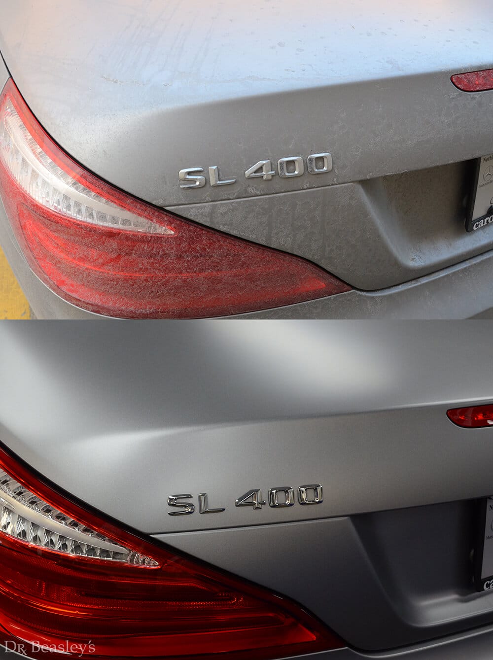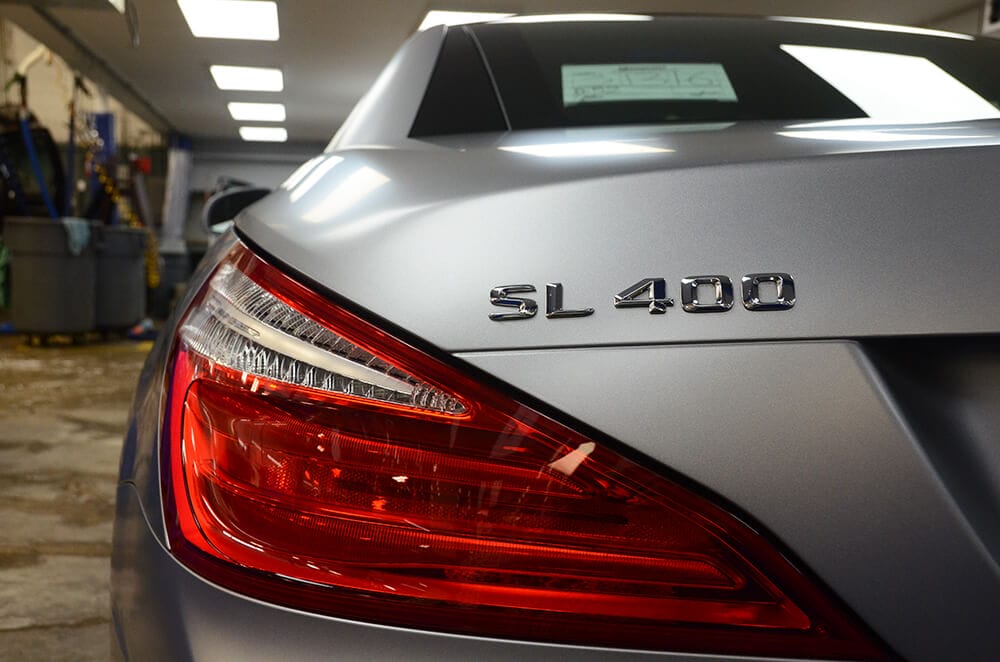 We detailed a beautiful SL400 in magno alanite grey that had been driven from Missouri to Chicago. As you can see, it was covered in road salt and other contaminants. The car owner protected the paint with Matte Paint Coating prior to winter, so hand washing the vehicle was easy.