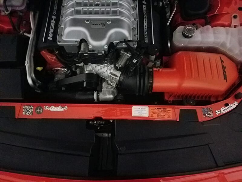 He reached out to us after receiving his order from our website to share his experience with Dr. Beasley’s. Tom was psyched to get a free sample with his order and loved the stickers we included. He sent us a few photos of his bold and bright Go Mango Challenger Hellcat after caring for it with our products. Our matte products are safe to use on glossy paint too, so a matte accented car doesn’t need to be taped off to be cleaned and protected.
