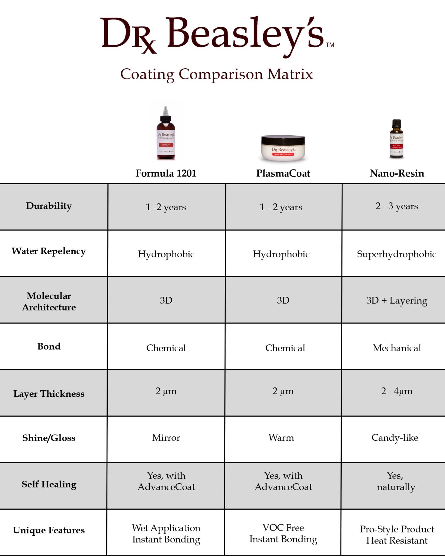 - Both coatings bond instantly and protect for 1-2 years. Formula 1201’s application is faster because it’s a liquid and it also uses water. PlasmaCoat is in the form of a paste/gel and contains no harsh chemicals.