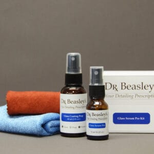 Formulated for professionals, this coating is permanent. Once you apply it to your exterior glass surfaces, they’ll bead and glow forever. Glass Serum Pro’s application is certainly the most detailed of the three glass products, as it requires a machine buffer. That’s why we’re offering it to professionals; not every detailing enthusiast has a machine buffer at home, but all professional detailers have a collection of buffers. To apply Glass Serum Pro, you’ll clean your glass and go over everything with Glass Coating Prep. Then you’ll spray use the entire 15ml bottle on your glass, spraying the coating on and then spreading it evenly with a foam block applicator. After a short time, the product will begin drying on the glass. This is good. After about 30 minutes to an hour of haze time, you’re ready to machine buff off the remaining residue. With a closed cell pad, buff the glass to remove excess product. You’ll have crystal clear glass with a beautiful glow. Glass Serum Pro comes in a kit and one kit protects one car.