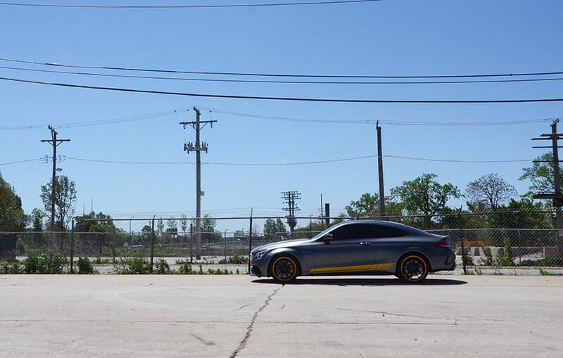 We did a little photoshoot with the C63 because it’s a beautiful car with unique accents. If the car was yours, would you add the decals? Would they be in yellow? Tell us how you’d customize your matte ride and check out these photos: