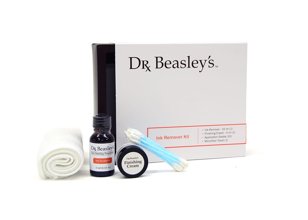 As you may have surmised, the kit includes 10 application swabs, a microfiber towel, Finishing Cream and the Ink Remover itself. Available for purchase here.