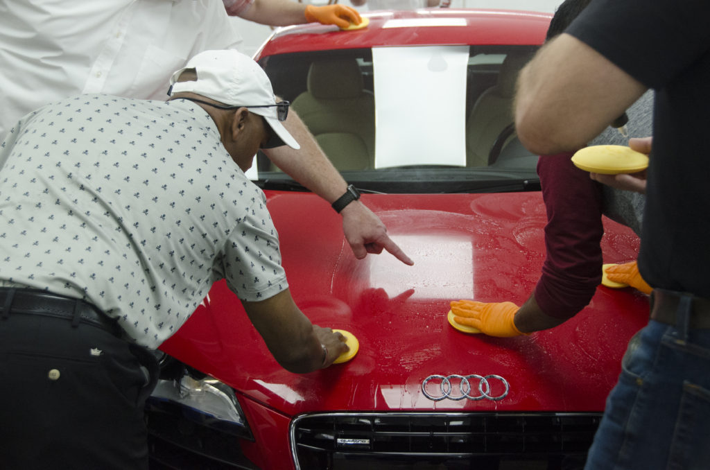 Participants were then given the opportunity to try using clay (with some Dr. Beasley’s Clay Spray, of course) to decontaminate. Some were understandably concerned about marring the paint, but we assured them we’d be able to fix any blemishes inflicted. Once that was understood, people started going to town with clay bars and clay cloths.