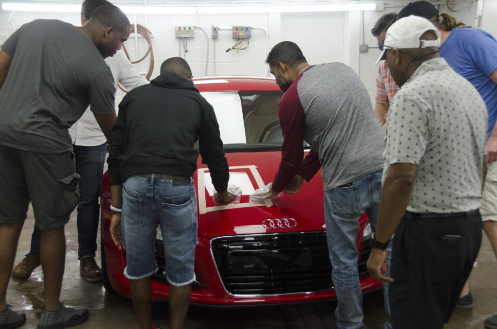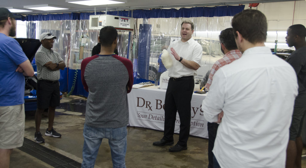 Around quarter to three attendees began trickling into the Simon’s waiting room. After everyone signed in we brought them into the classroom and the workshop got started. To kick things off, Jim gave the class a quick run-down on Simon’s and Dr. Beasley’s, then jumped right in to the main topic – paintwork protection.