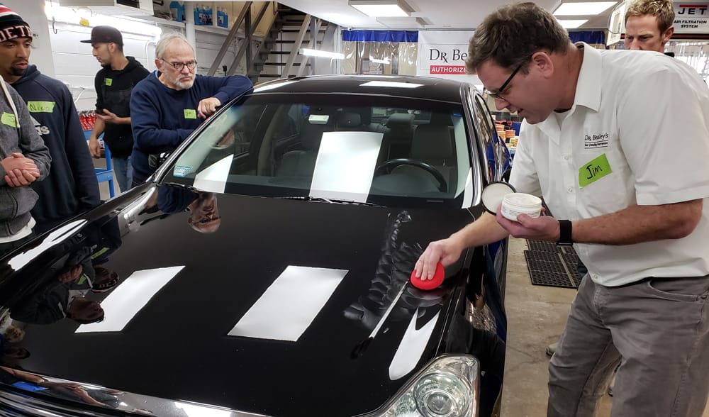 Once the buffing work was done, Dr. Beasley’s founder and President Jim Lafeber dropped in to show the class how to protect their work with Dr. Beasley’s PlasmaCoat. But just before the demo began, Garage Squad’s Bruno Massel dropped by to say hello!
