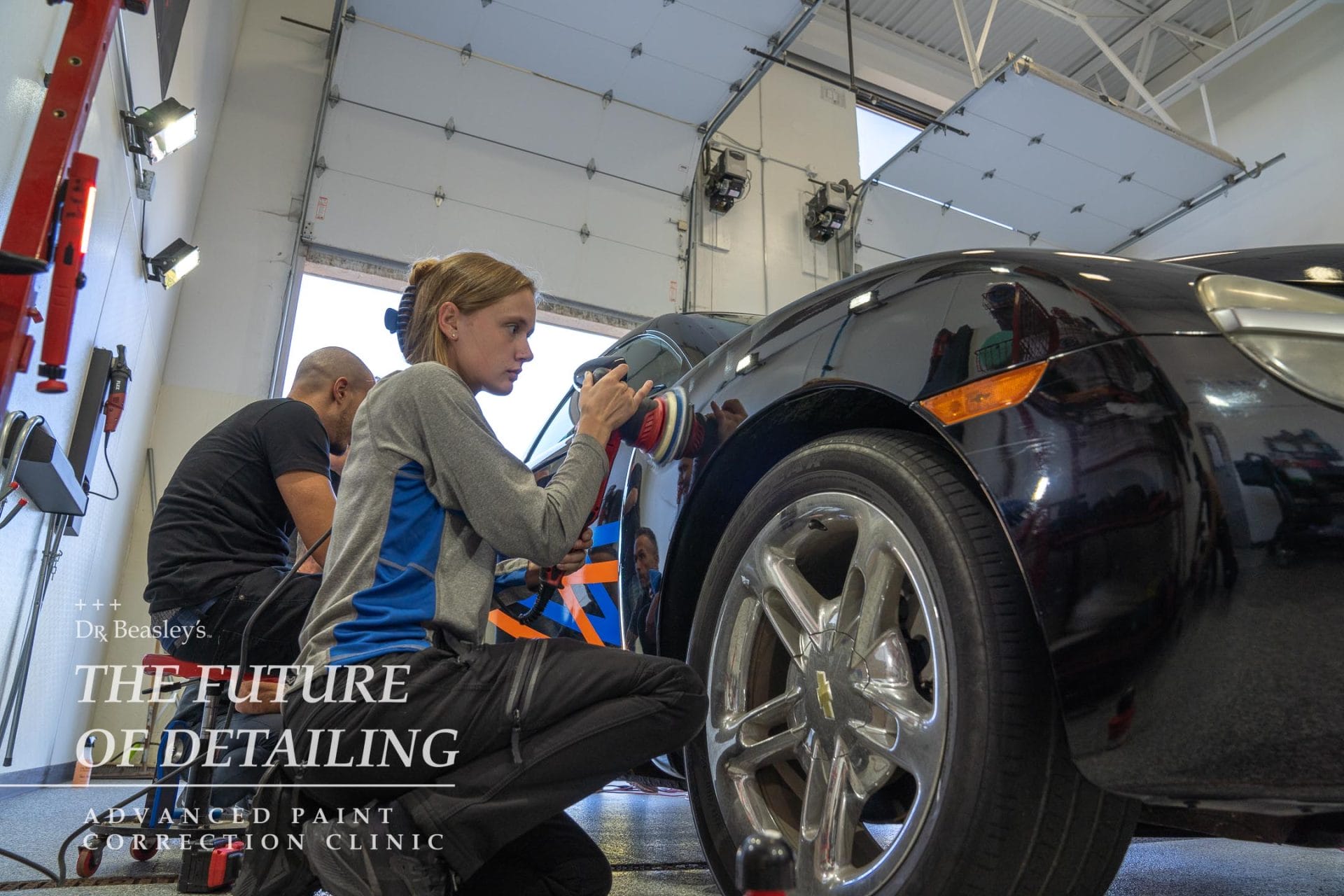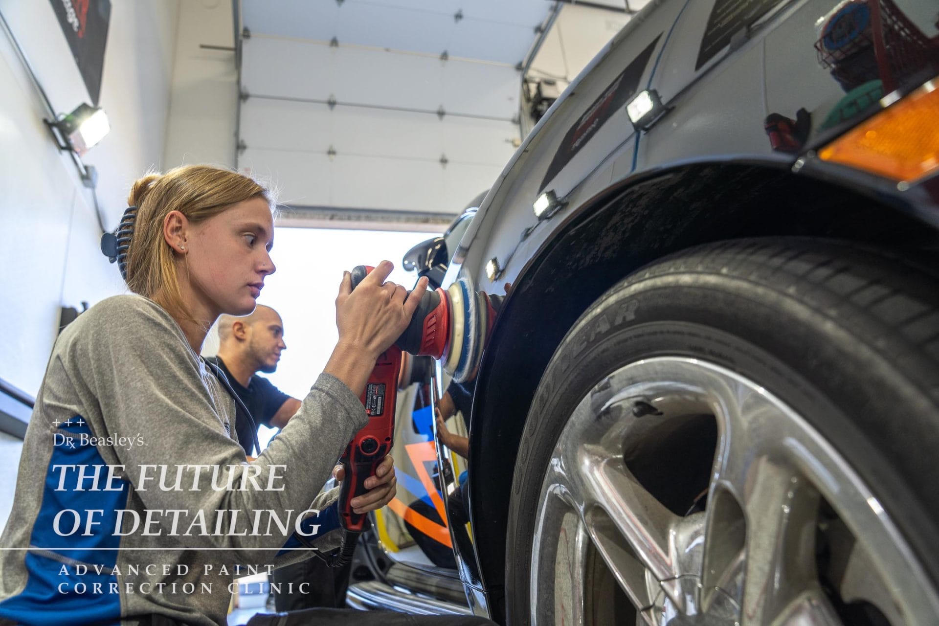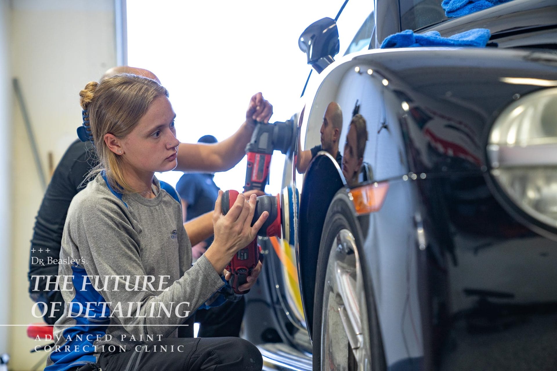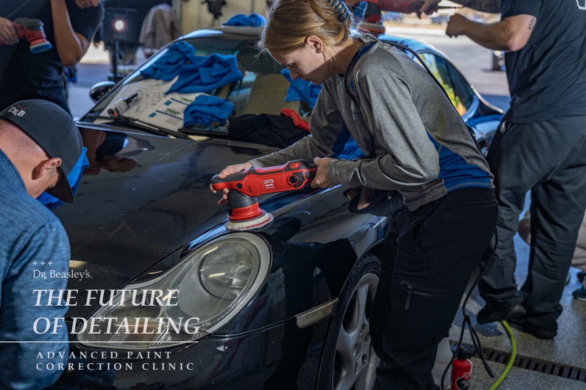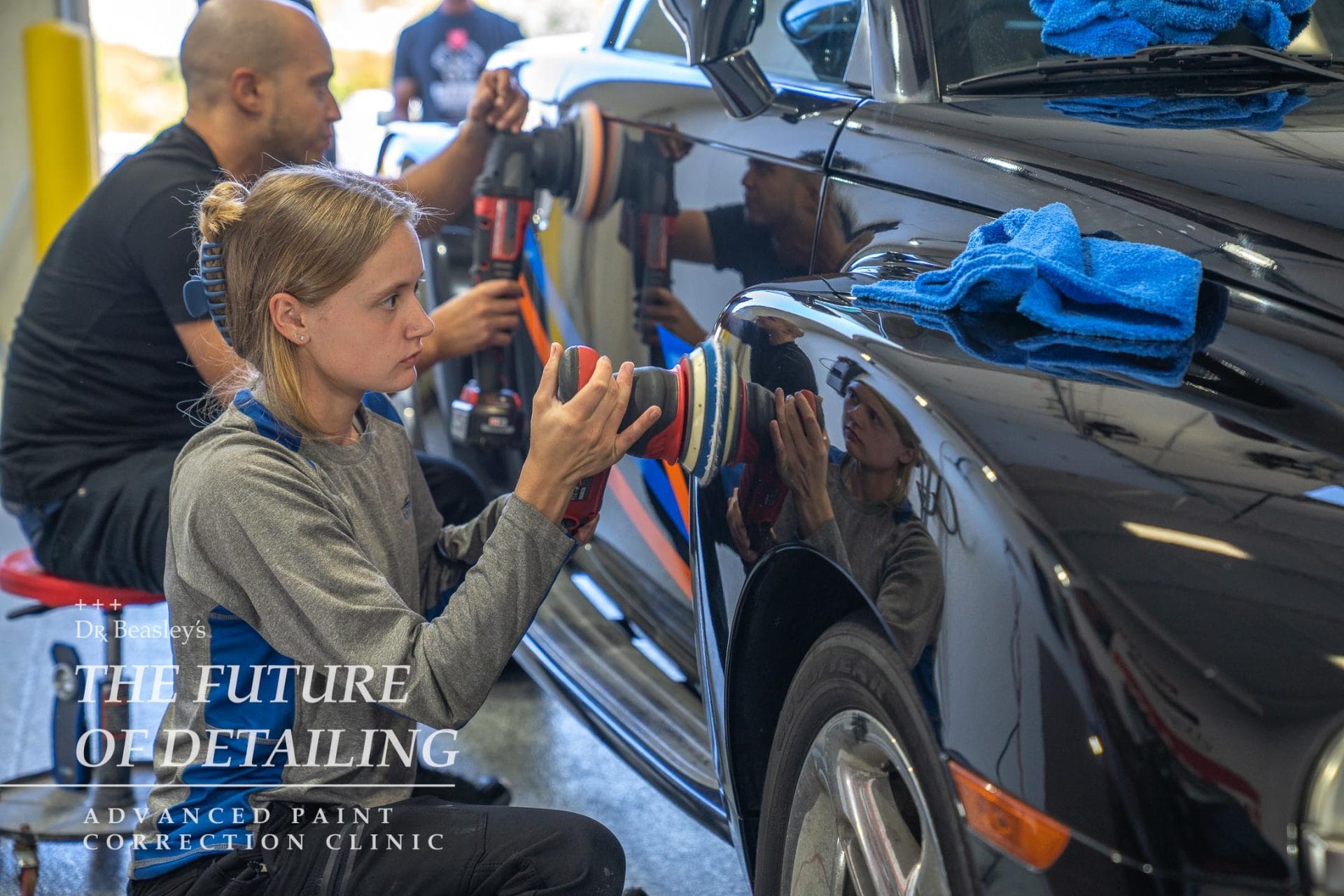 The APC Clinic focuses more on sophisticated automotive paint reconditioning techniques as opposed to the more general detailing topics covered in our “Primer” clinics. Over the course of two days students worked together to correct the paintwork on a total of seven vehicles:
