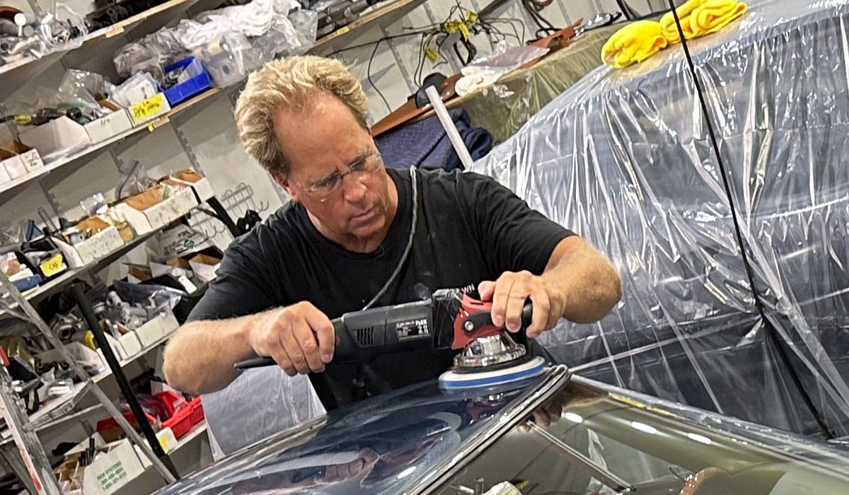When performing a paint correction on any vehicle, the normal procedure after dialing-in your process via the Test Spot is to start at the highest point of the car and then work your way down and around to the lowest panels. Here’s yours truly doing the first paint correction step to the roof.