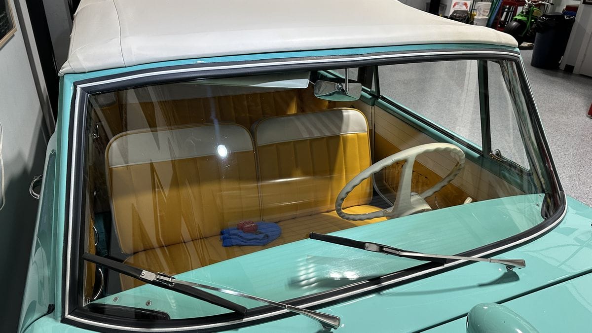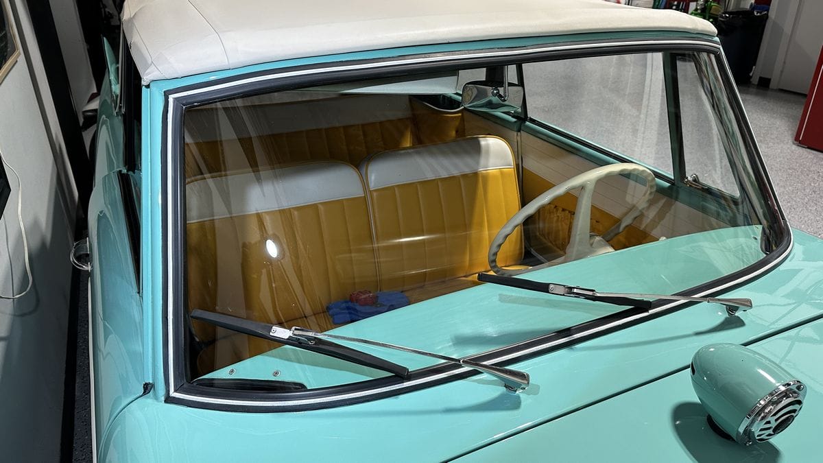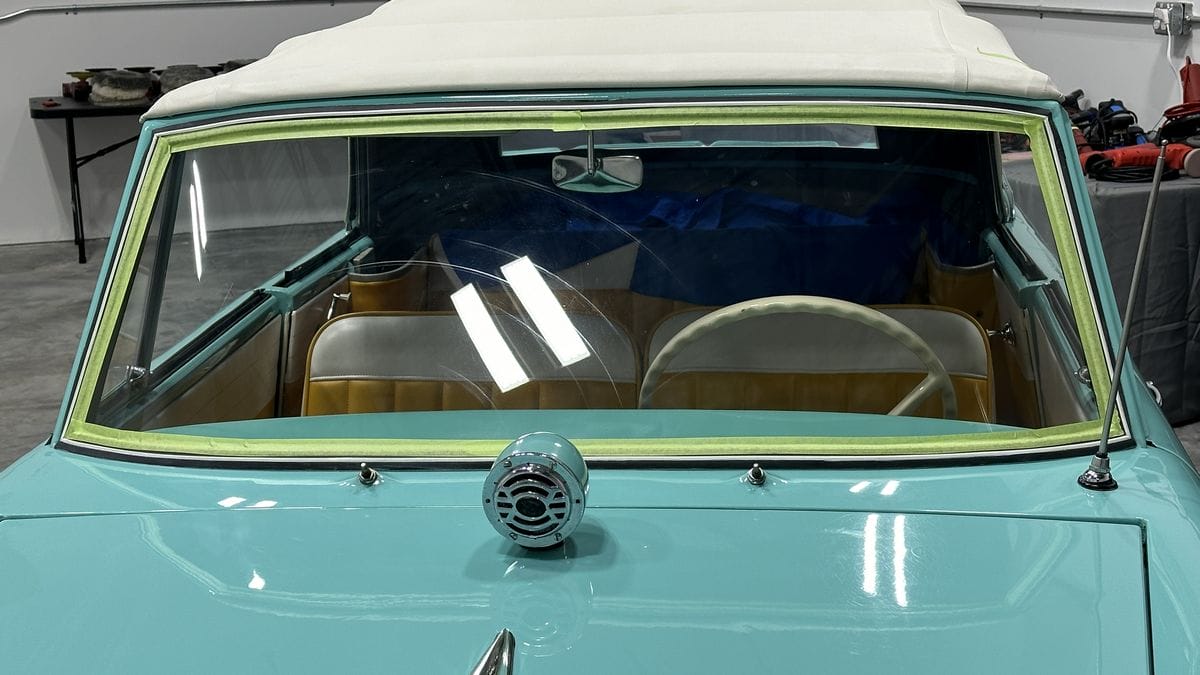 Carefully remove the painter’s tape. The rubber windshield gasket for this Amphicar looks to have a HAND PAINTED white stripe placed in the middle of the windshield gasket. I placed the tape just in front of this painted line so as to prevent any possible removal of the white paint.