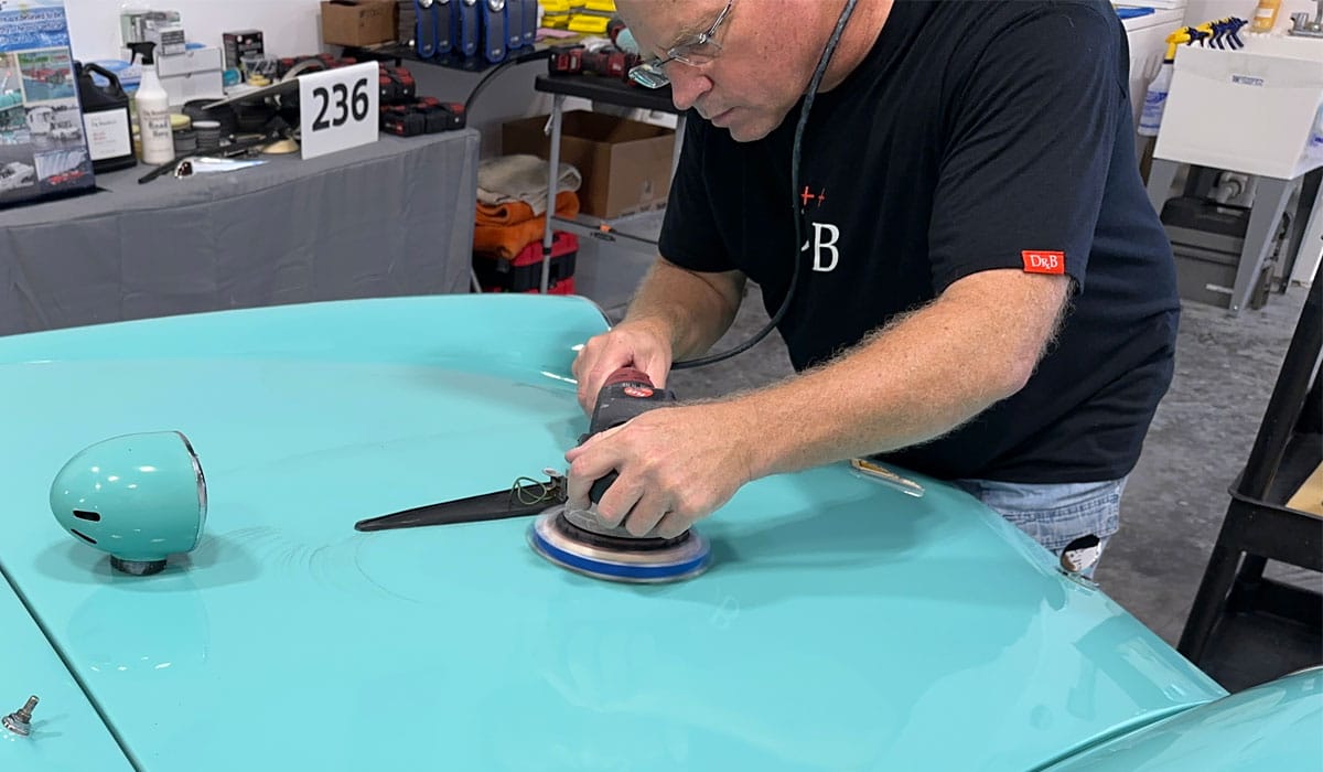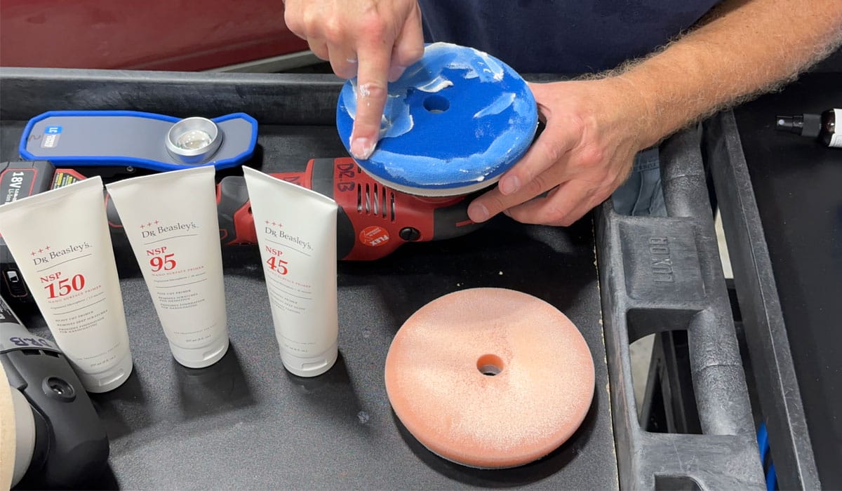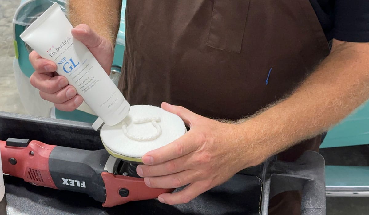 Step 2: Use NSP 95 with a foam pad on a gear-driven orbital polisher to remove holograms caused by the fibers of the wool pad.