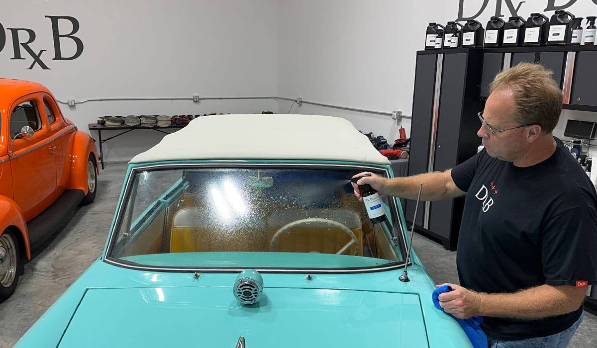 After wiping off most of the polish from the glass, next I used the Dr. Beasley’s Glass Cleaner to remove any trace residues or films off the glass with a few clean, dry microfiber towels.