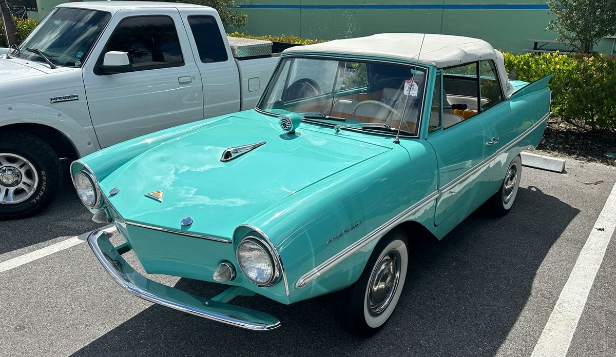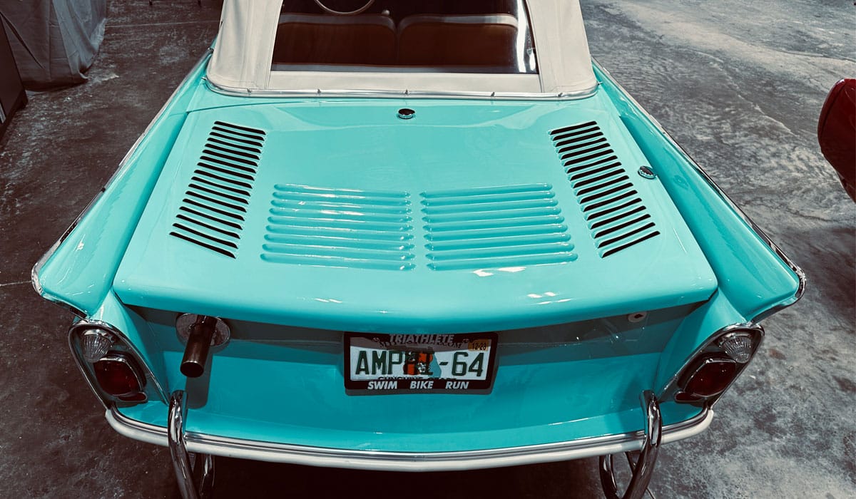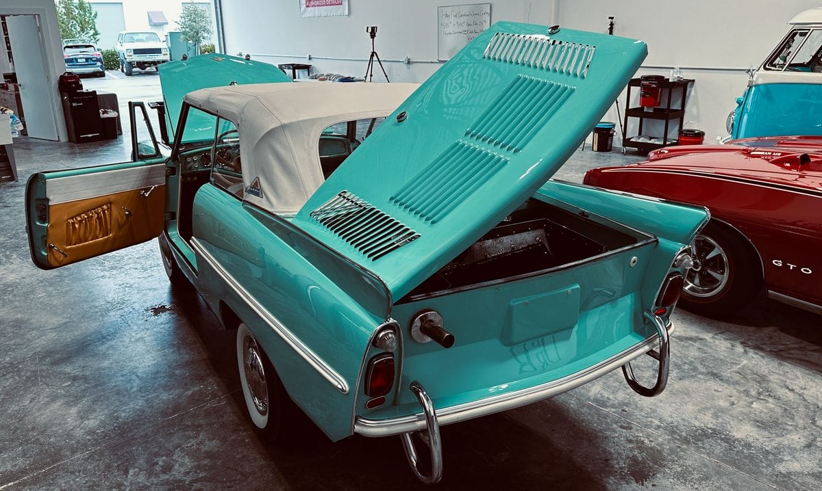 The first time I saw the car was in my good friend Gino’s Man Cave. Gino has a unique car collection and the Amphicar is one of the more unique cars in his collection. Under a car storage rack, I couldn’t really tell the true and accurate condition.