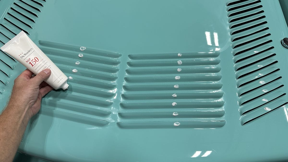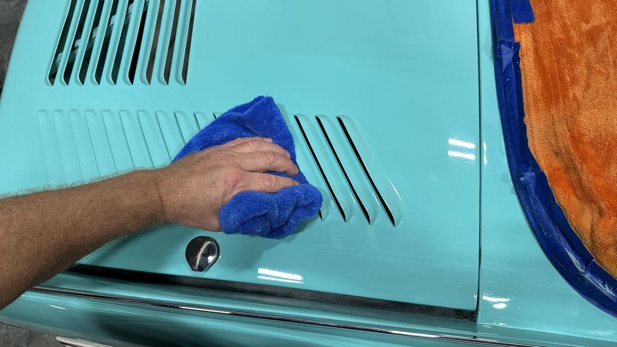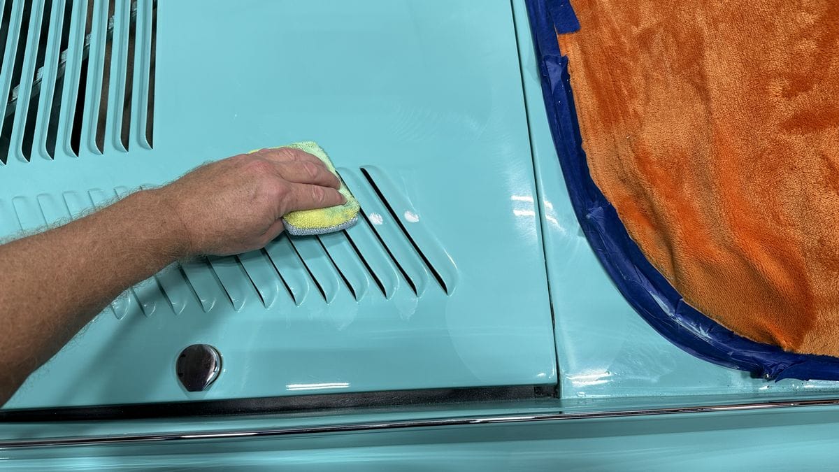 I can see I’ve polished these first two louvers because the drop of polish has been worked over the paint. I can just as easily see which louver’s I still need to polish.