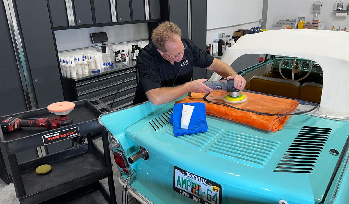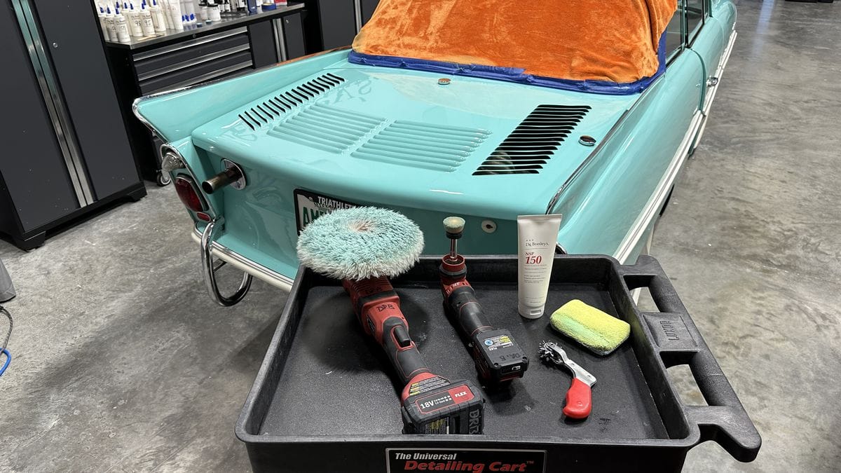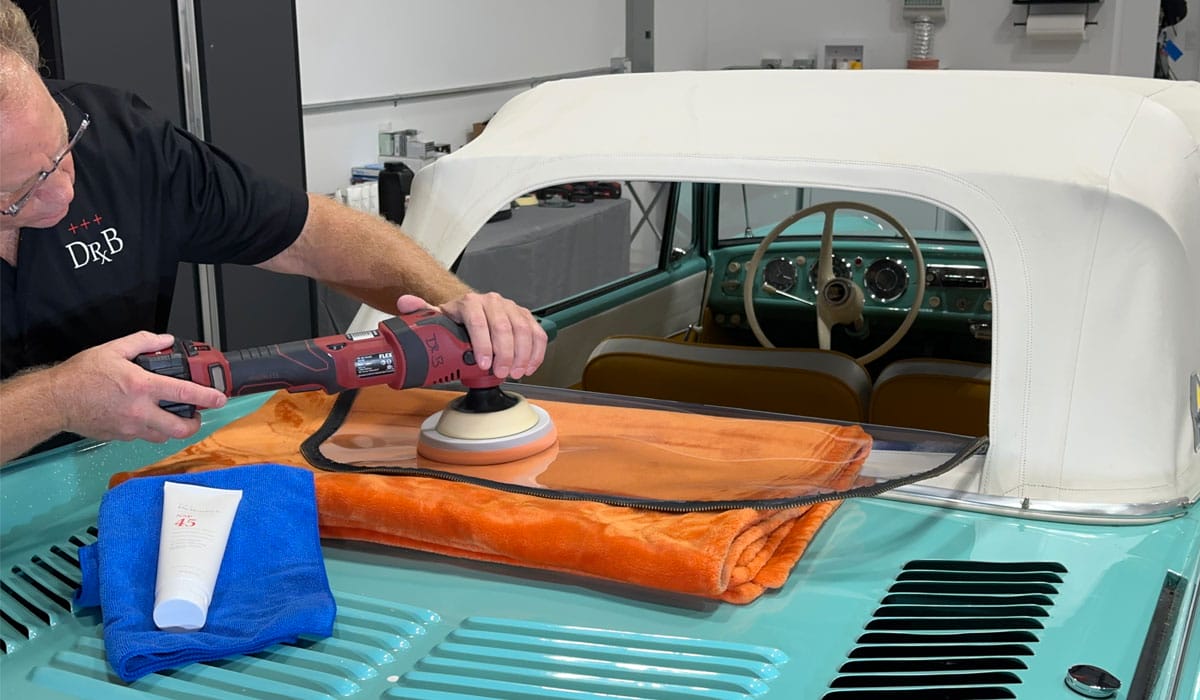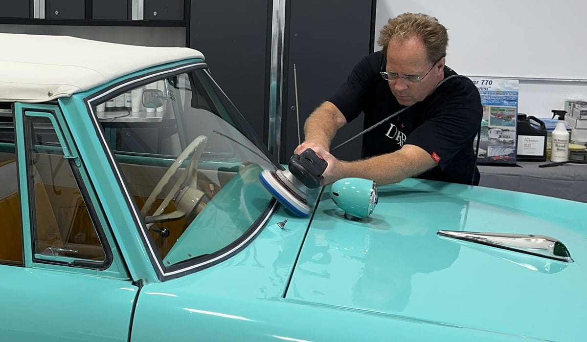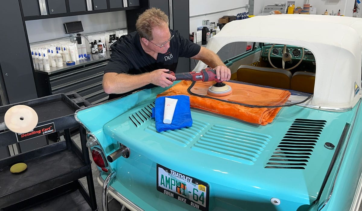 I did a number of test spots, which is where you test out a combination of products, pads and tools required to remove the defects to your satisfaction. The swirls and scratches were so bad in the paint on this Amphicar, I found in order to remove the majority of these defects and restore a finish that would be respectable when the car is on display in full sunshine at a concours event, I would have to use the following multiple-step, show car process.