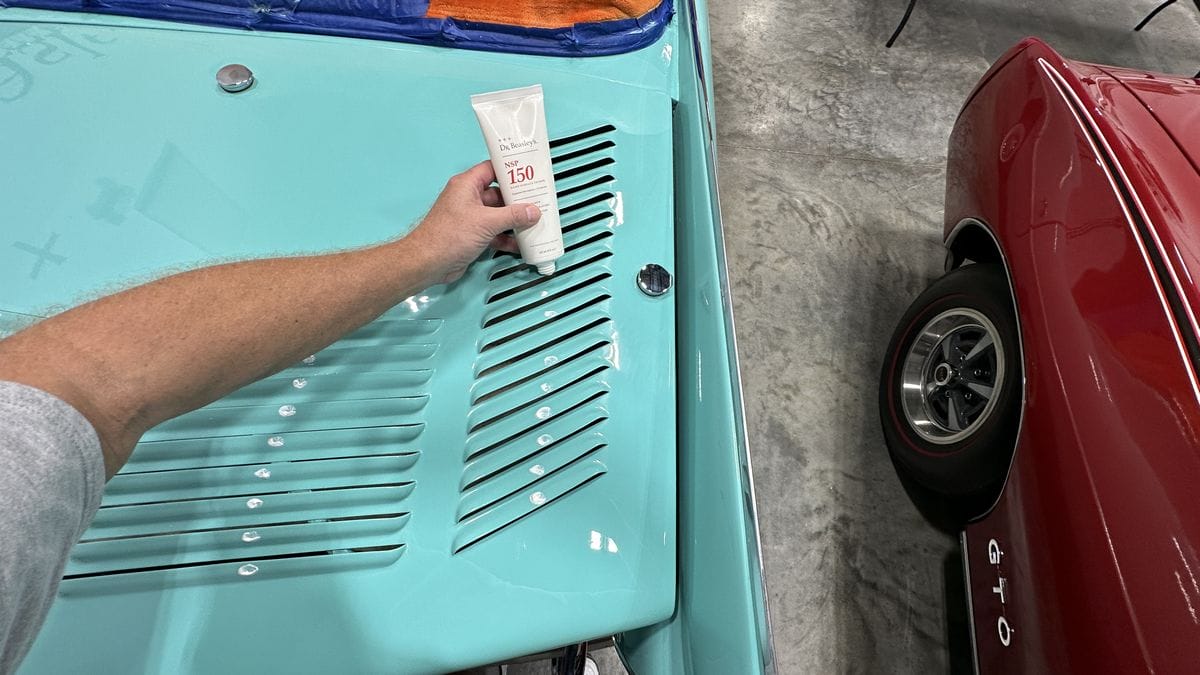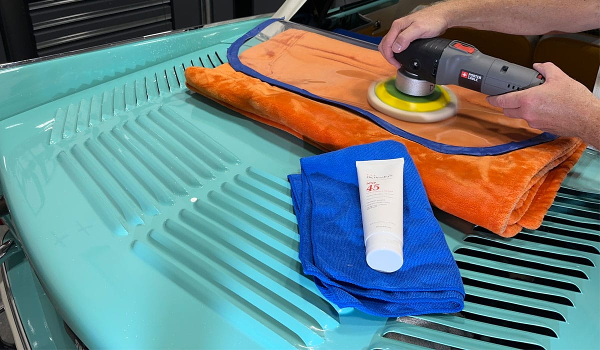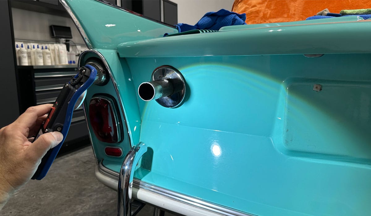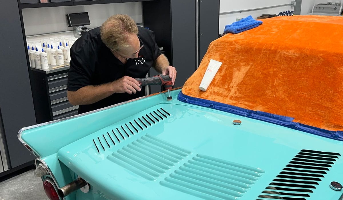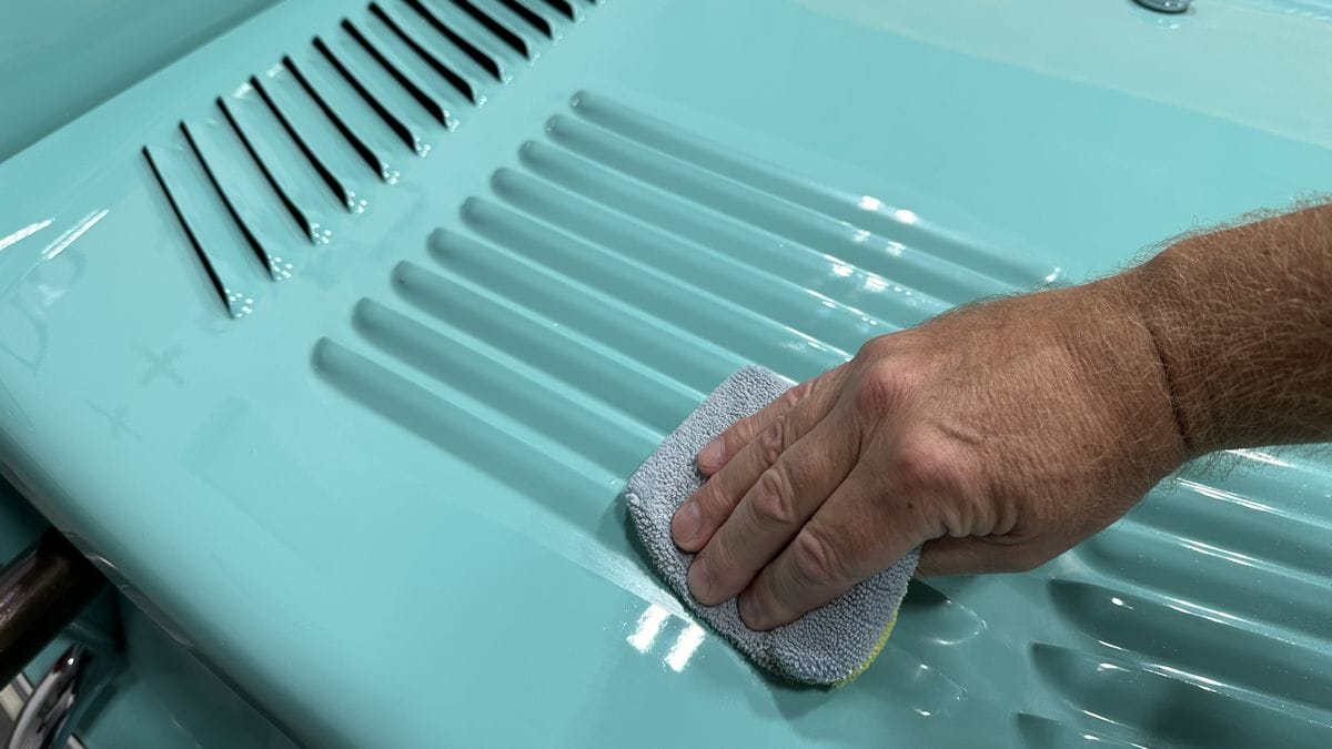 I did a number of test spots, which is where you test out a combination of products, pads and tools required to remove the defects to your satisfaction. The swirls and scratches were so bad in the paint on this Amphicar, I found in order to remove the majority of these defects and restore a finish that would be respectable when the car is on display in full sunshine at a concours event, I would have to use the following multiple-step, show car process.