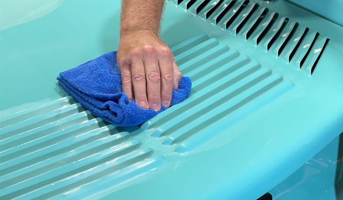 Anytime you’re installing a ceramic coating, it’s important to use a powerful hand-held light to inspect for any high spots and remove them using a clean, microfiber towel.