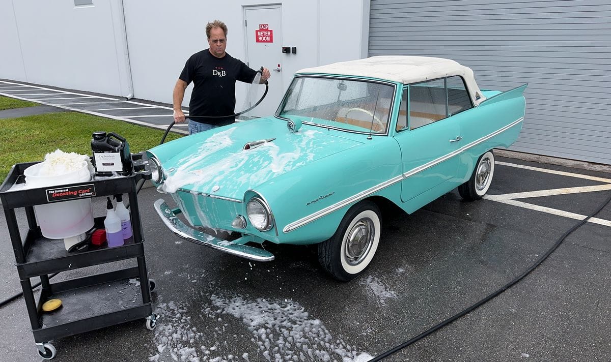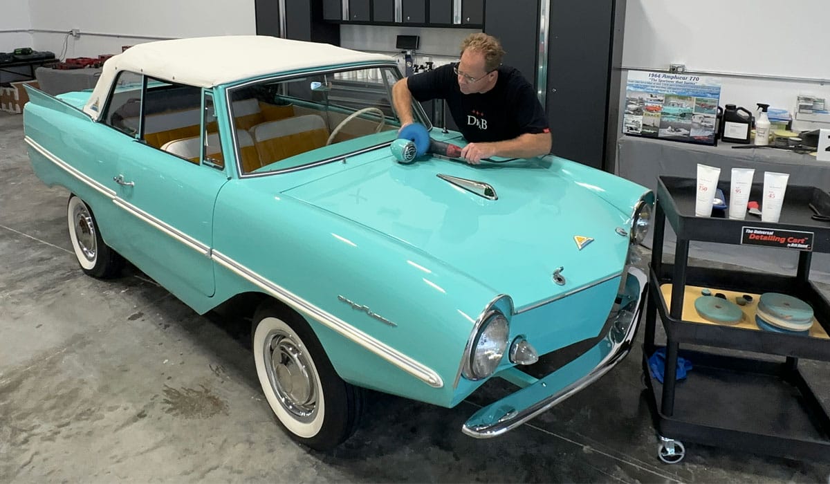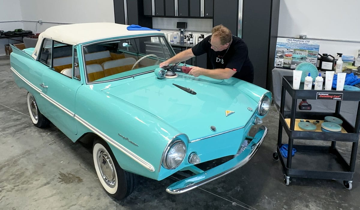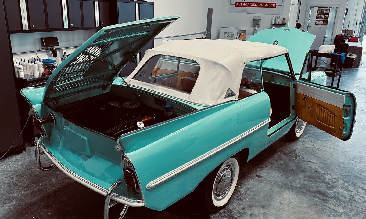 I feel very blessed that I’ve had the opportunity to work on a lot of very cool, interesting and even rare cars in the detailing industry. Anytime I work on something I’ve never worked on before and it’s highly likely that I’ll never work on again, I refer to this car as a Bucket List Car. Such is the case for this 1964 Amphicar. I’ve never worked on one before and chances are good – I’ll never work on another again.