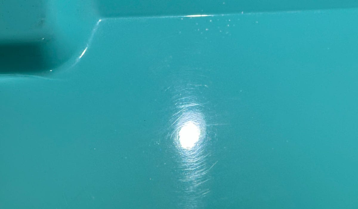 While I was inspecting the glass, Gino moved a classic 1978 AMC Pacer out of the way, (which we also used for a Dr. Beasley’s LIVE online detailing class), and then moved the Amphicar outside. It was shortly after twelve o’clock noon so the sun was high in the South Florida sky. I used the bright overhead sun to inspect the condition of the paint and I have to say, I wasn’t surprised at what I found. Like the glass on older classics, the paint was not only filled with random swirls and scratches, it also had HOLOGRAMS!