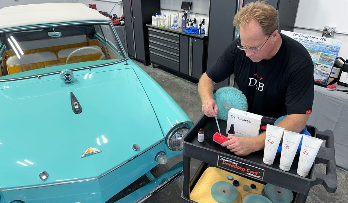 Here at Dr. Beasley’s we’re pro-education and our detailing classes cover all the products, tool, pads and most important – techniques used to take this neglected Amphicar and make it show-ready. You can get more information about our classes like dates, locations and pricing by clicking the link below.