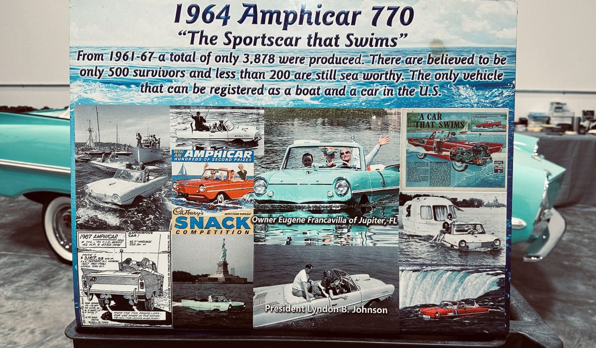 Here’s the owner and good friend Gino driving this Amphicar at a local lake. What I like about Gino is unlike a lot of car collectors, Gino DRIVES his car collection including taking the Amphicar out on the water! Pretty cool!