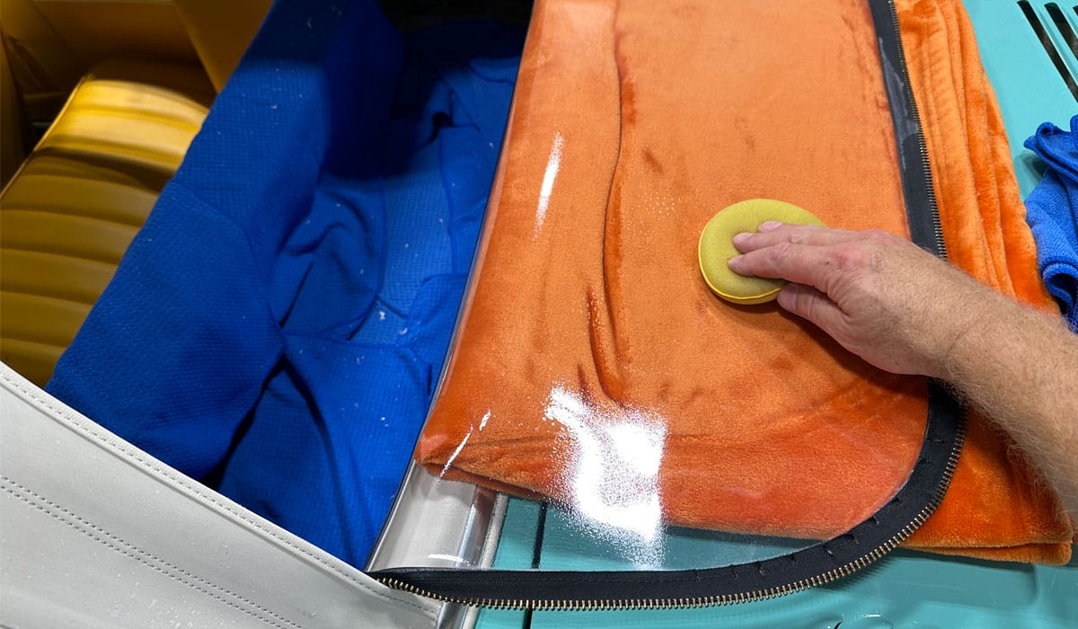 Machine buffing the inside portion was the tricky and most difficult part. After that I zipped the window back into place and repeated the exact same process to the outside surface of the clear plastic window.