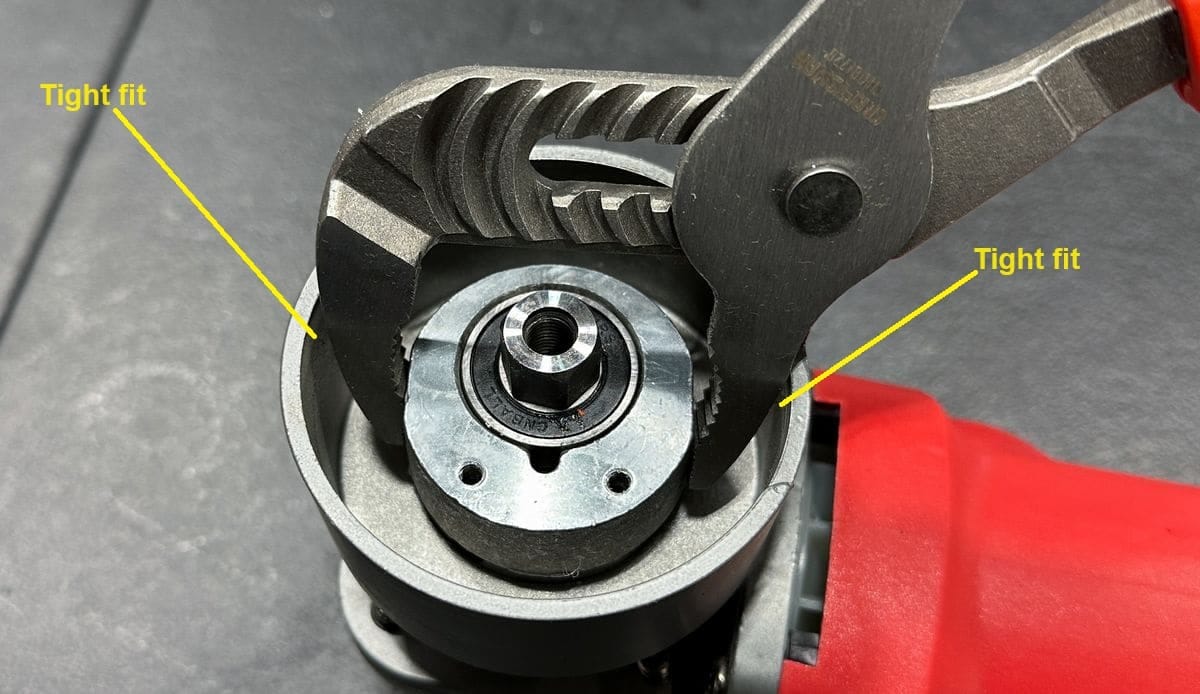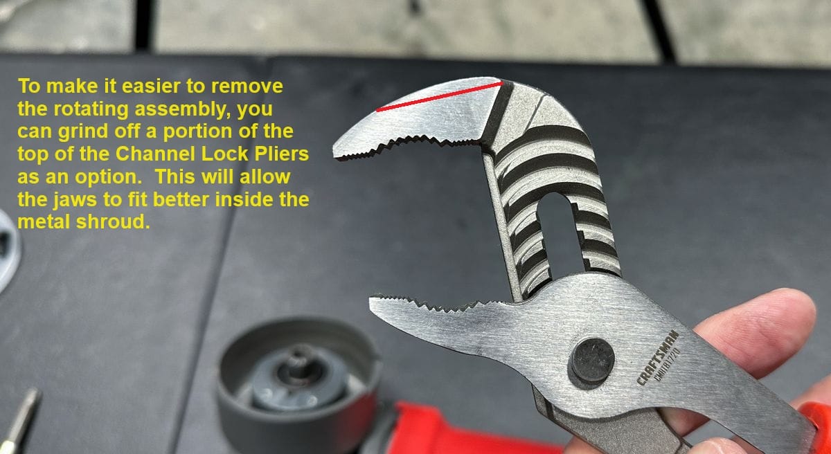 Note that itโs a TIGHT fit to get the jaws of a set of groove joint pliers inside the housing. Groove joint pliers have the thinnest set of plier jaws out of all my wrenches and can be purchased at most local hardware stores.