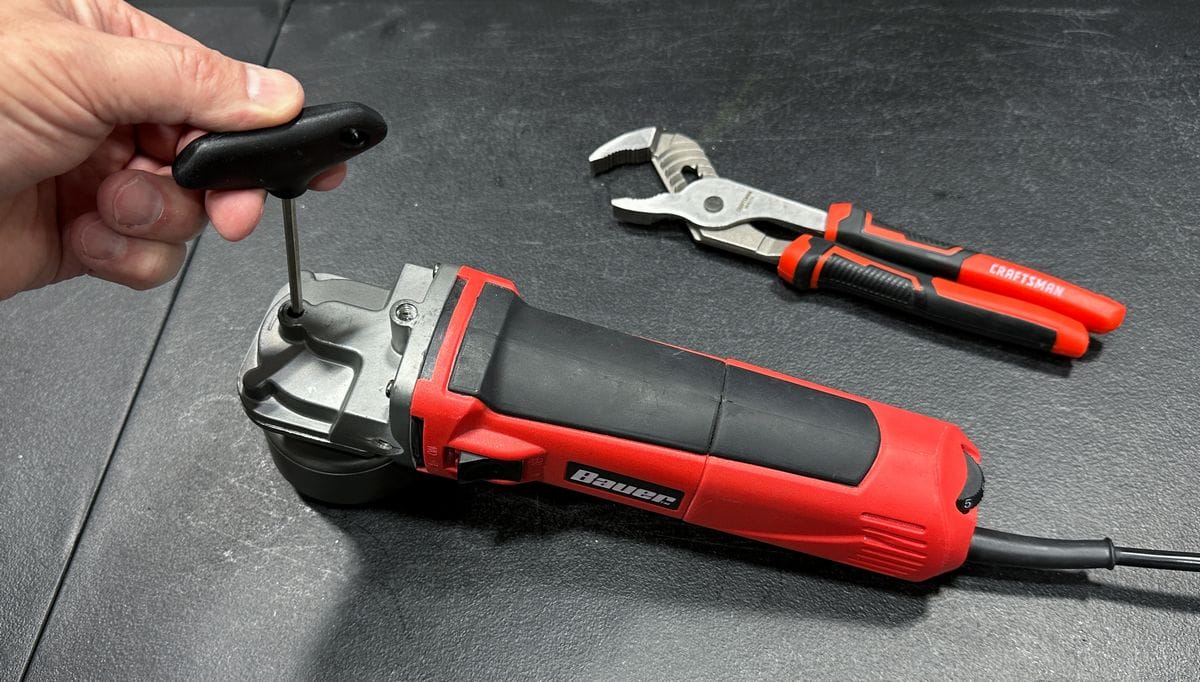 To remove the rotating assembly, youโll need to lock-up the rotating assembly on the top side of the polisher while grabbing onto the rotating assembly with the groove joint pliers. The polisher comes with an Allen wrench to lock-up the rotating assembly so you can unscrew it using the groove joint pliers, but I found a T-handle Allen wrench easier to grip while loosening the rotating assembly.