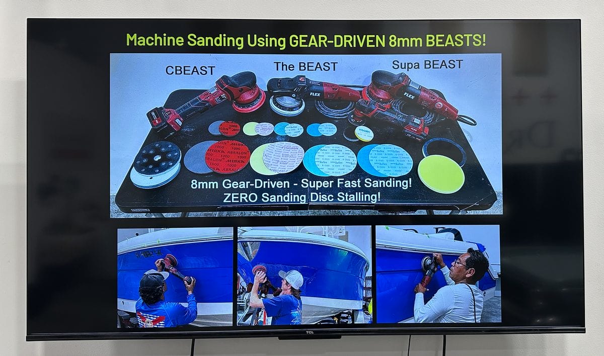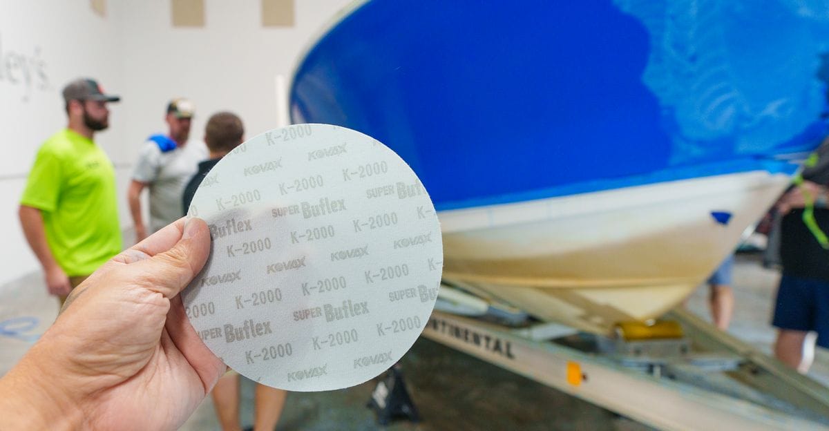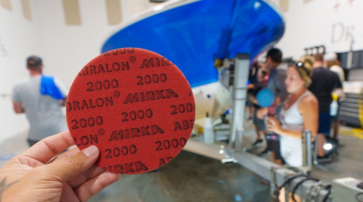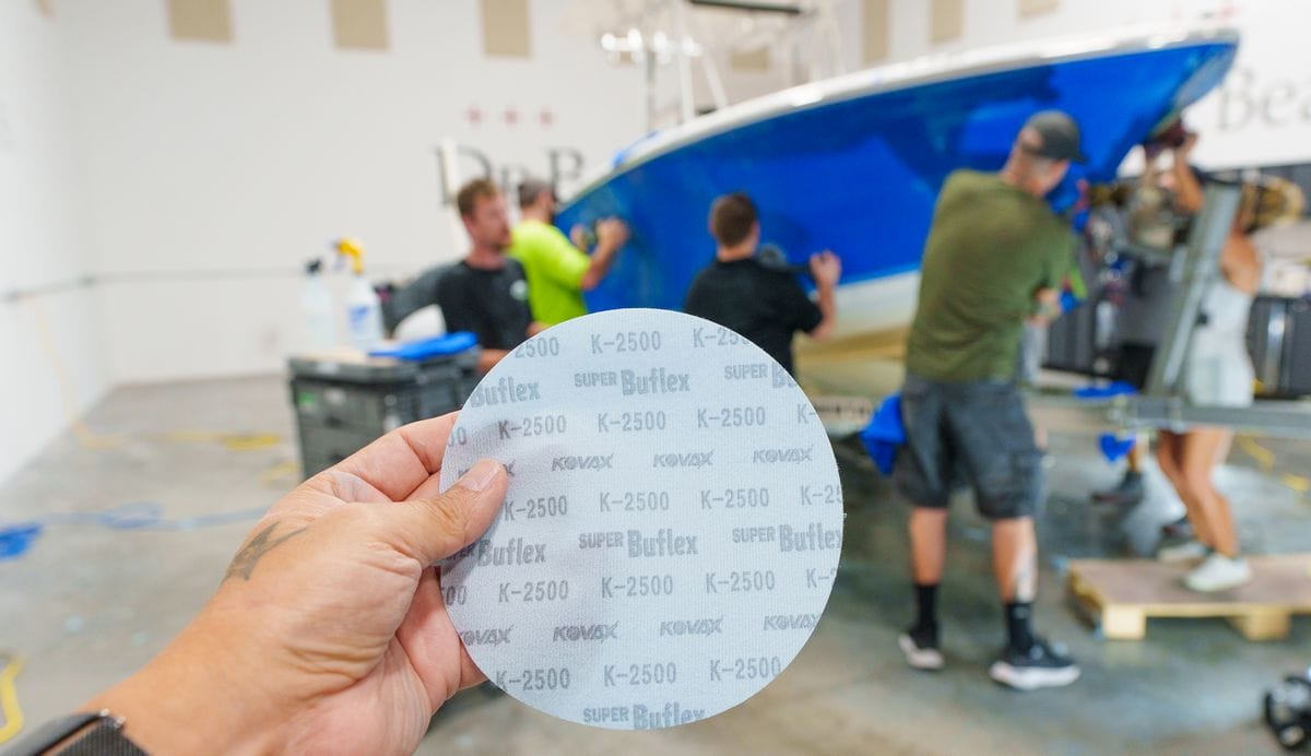 Machine dry sanding is also the best approach for anyone wanting to create a show car finish on a boat. The reason why has to do with the design of the sanding discs and more importantly, the micro-hook interface pads.