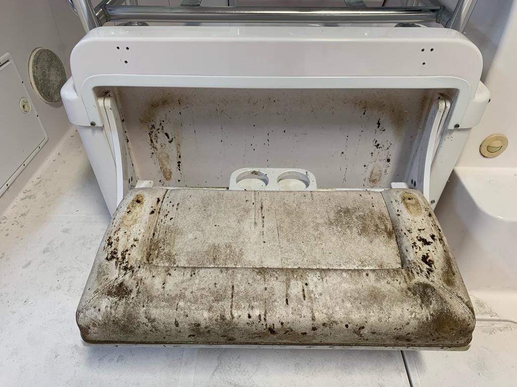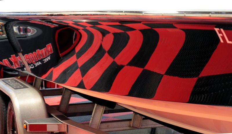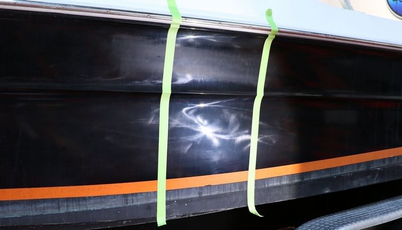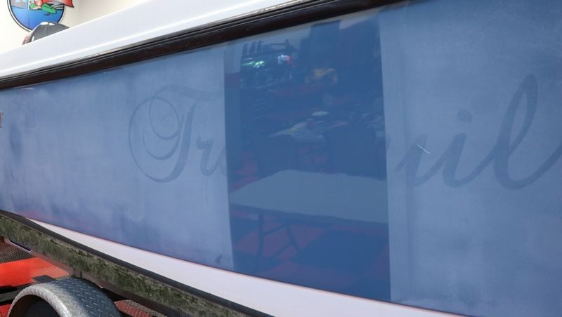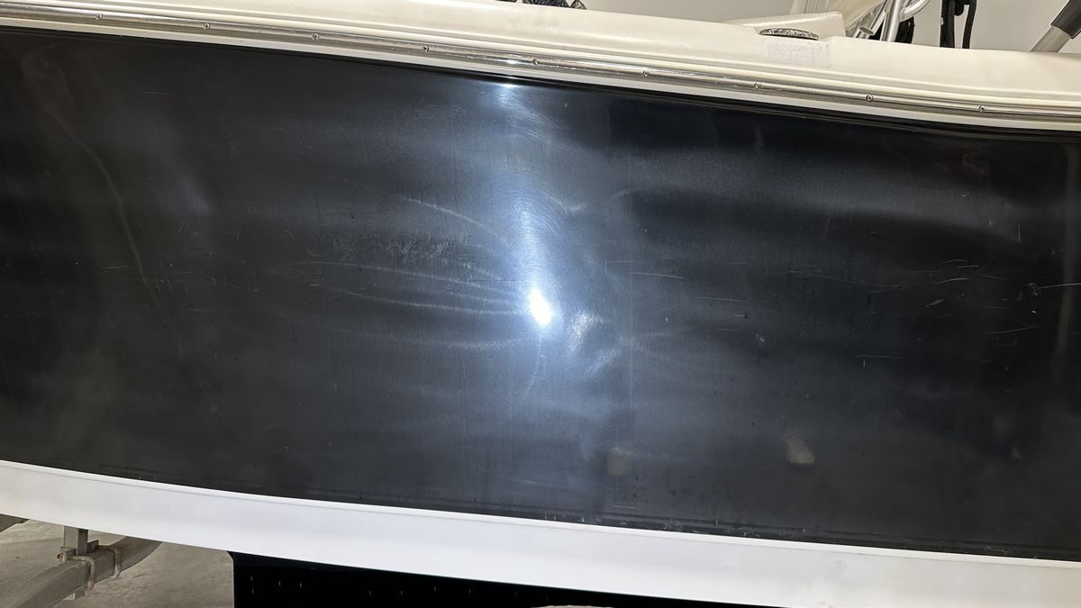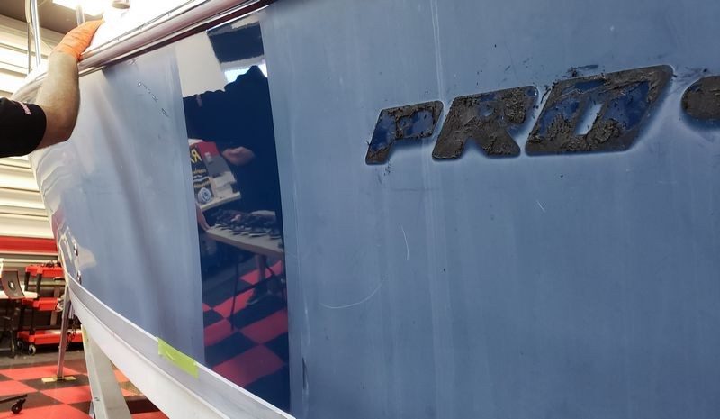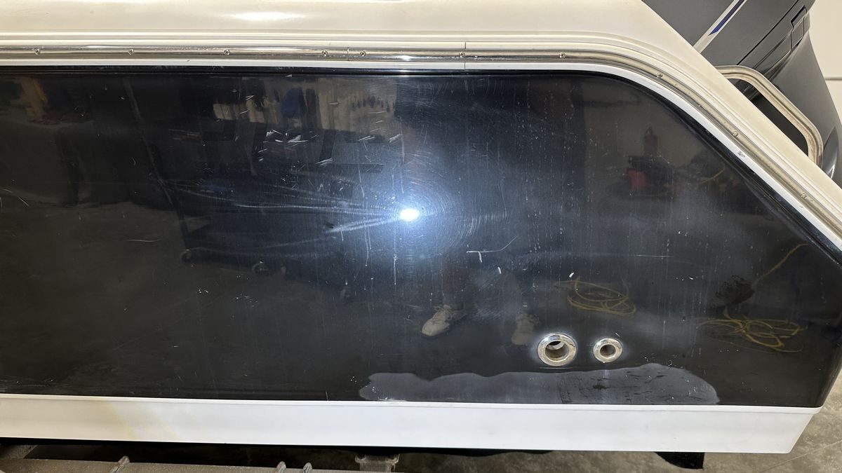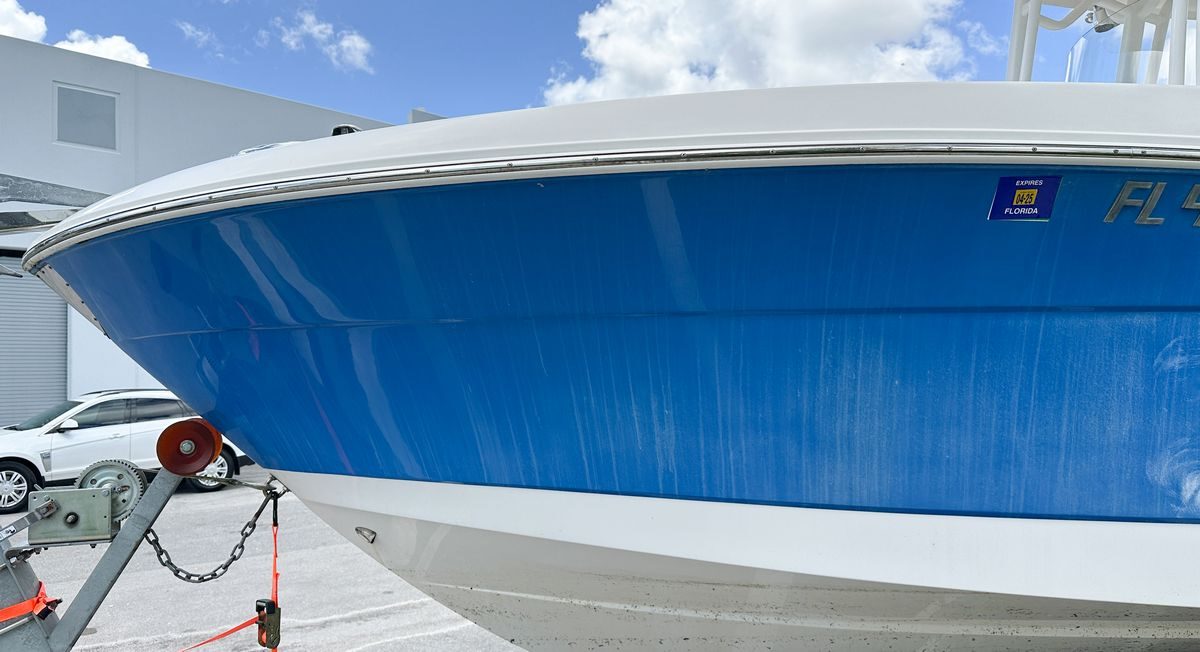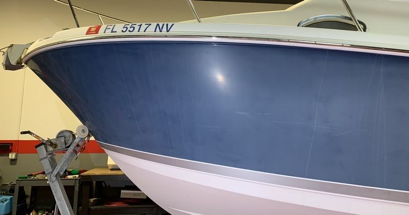 The outside hull was filled with straight line sanding scratches from the owner trying to sand the boat himself using #220 and #320 grit sandpaper! In case you donโt know, this is way too aggressive of a sandpaper for this type of work. In the real world, the lowest most people would go is 600 grit and even then, you better know how to recover, or you and your boat are going to be in a world of hurt!