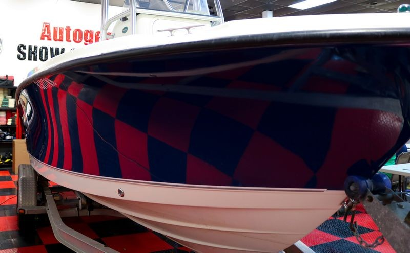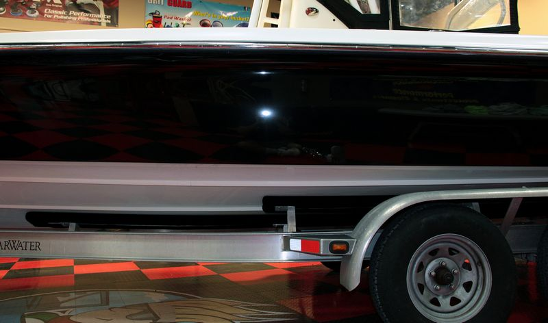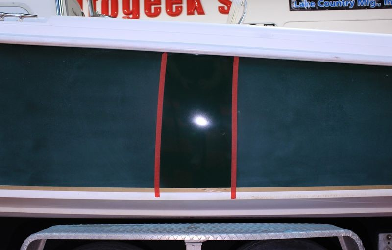Below are before and after examples from using a WHITE colored gelcoat boat for a class. Can you see the difference? The answer is yes, it’s simply not as dramatic of a before and after difference as you get with dark colored gelcoat boats.