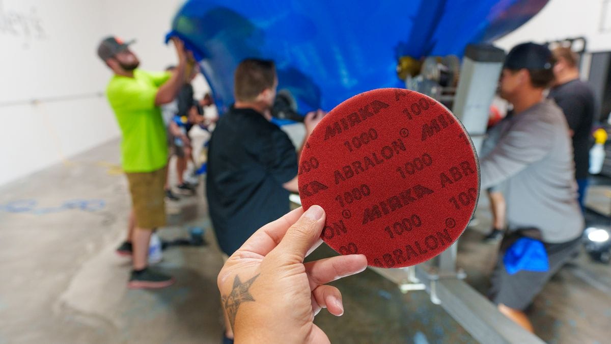 The choice is yours; you can spend more time sanding or more time buffing. Sanding tends to be easier and faster than trying to buff out deep scratches. In our classes, I teach how to sand-out to a higher grit sanding disc as this will make buffing with a rotary buffer to remove the sanding marks faster and easier. Seasoned professionals will tend to finish out at 2000 grit and then buff hard for hours, and this is an option.