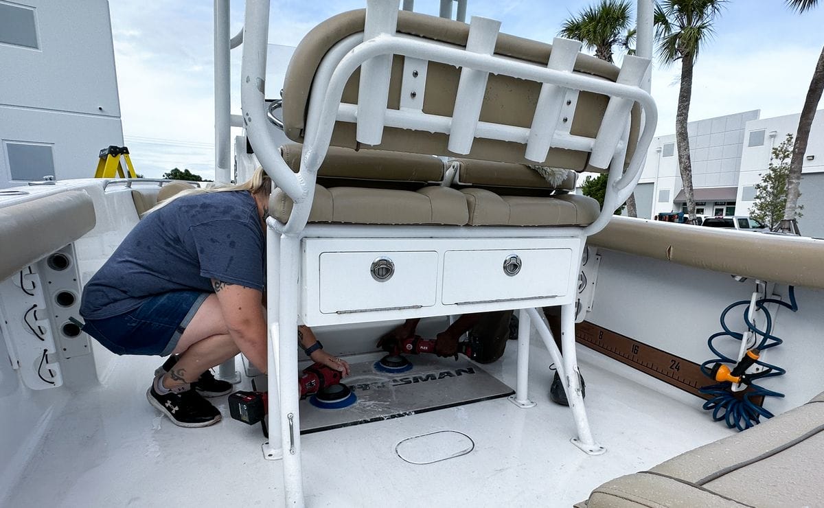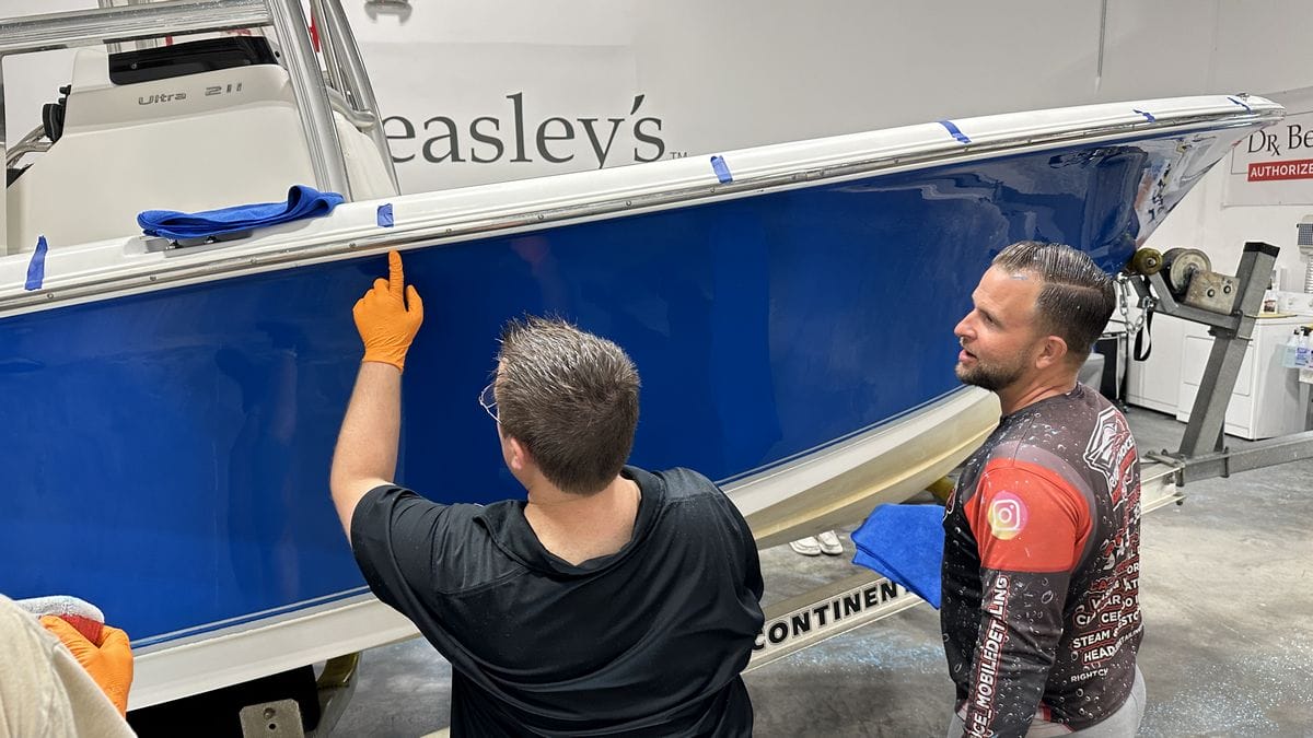 Students will start with a pre-prepped boat to provide maximum time for gelcoat correction and ceramic coating protection. I do not cover washing or decontaminating the boat on this day.