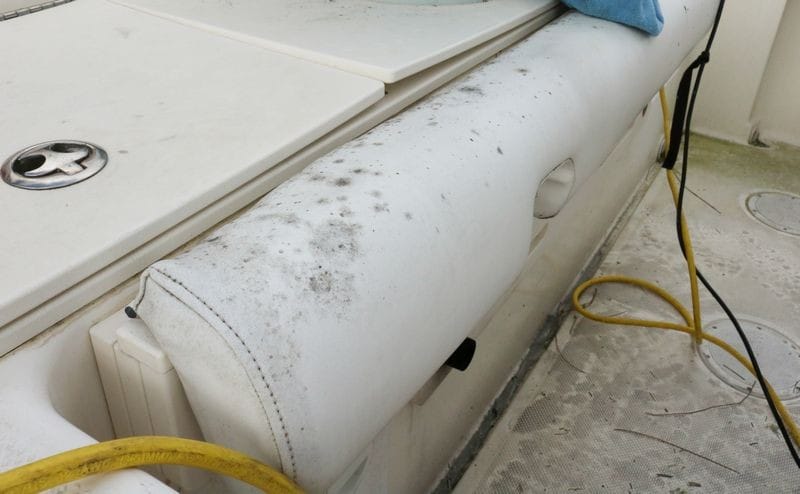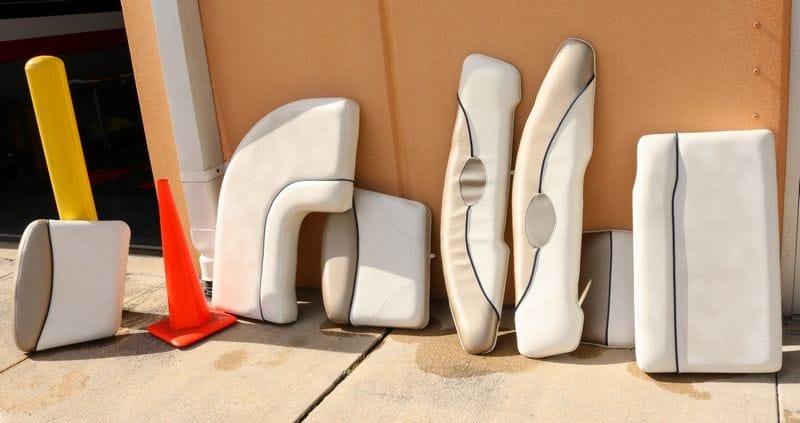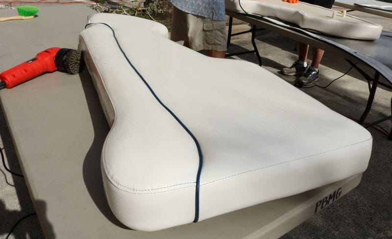 When possible, remove as much of the contaminated vinyl cushions as possible. Place them on tables to make cleaning the various shapes and designs easier on you and more efficient to the vinyl.