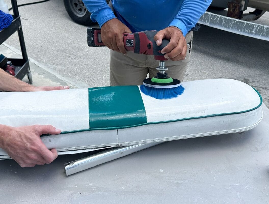 Boats often feature extensive vinyl surfaces, such as seats, leaning posts (also known as rocket launchers), and interior bolsters. Students will learn how to clean vinyl by machine and protect the surface after.