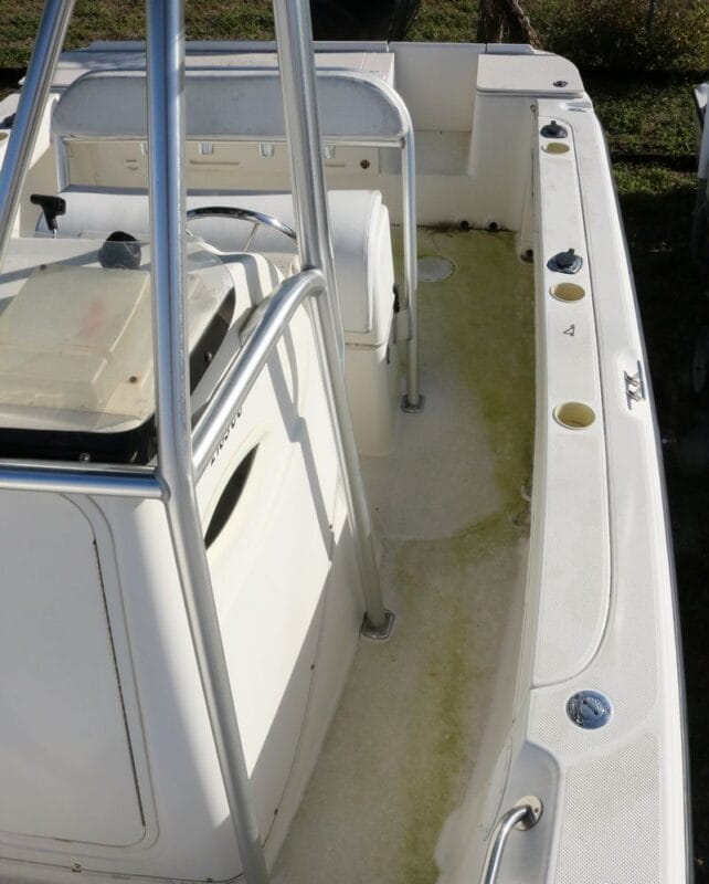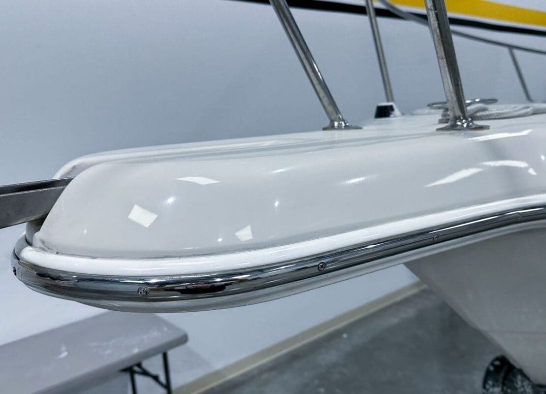 This is why I don’t like to use white boats. Hard to see the before and after differences with the human eyes and a lot more difficult to capture and showcase via photography and video – at least compared to dark colored hulls. And just to note, the before and after results you see in the white gelcoat below were created using a 1-Step AIO.
