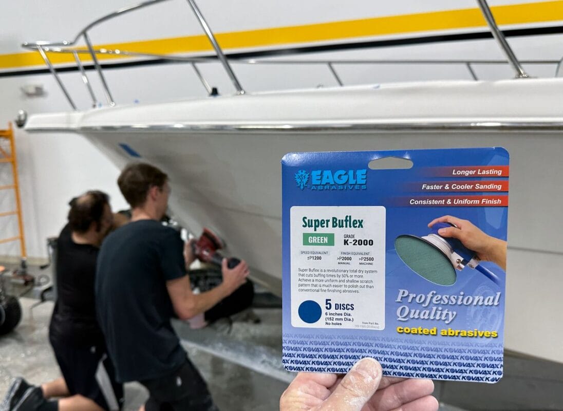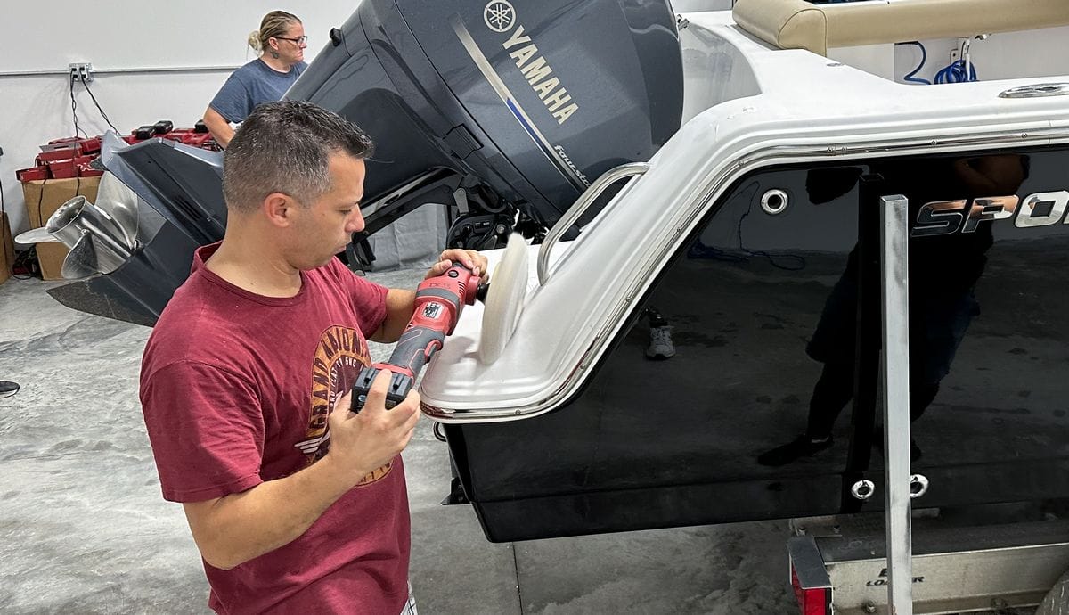 First – Like with car detailing, the majority of people interested in learning how to detail boats are predominantly interested in learning how to use tools to restore the gelcoat outer hull. In the car detailing world, the most popular topics are paint correction and ceramic coatings. Wet sanding or any type of sanding is also high on the priority list. This translates to boat detailing. The most popular topics are gelcoat correction and ceramic coatings and of course, with severely neglected boats, sanding is an important aspect.