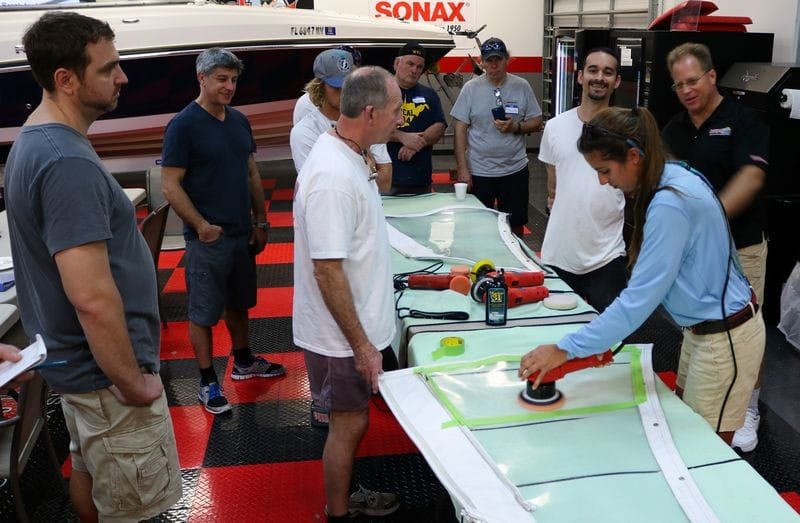 Great question. The goal of any boat training class is to teach others how to go from neglected to respected using the most efficient tools, products, and pads. Itโs important that the students get plenty of hands-on time working through the process to build confidence in their knowledge base and skill set so when they leave the class, they know what to do and what not to do.