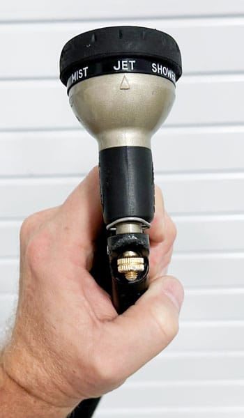 Most of the cleaning, washing, and rinsing steps will be done using a pressure washer. However, there are times where you need a simple water sprayer. Iโm a huge fan of quick connectors to make switching between water tools faster and easier. Quick connects also reduce steps, as you can turn the water off at the end of the hose versus having to walk all the way back to the water spigot.