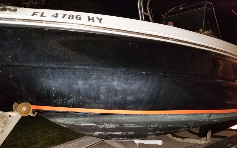 The gelcoat MUST be a black or dark in color and the boat needs to be neglected to the point the gelcoat has turned white with oxidation.