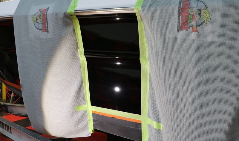 At the start of the process, I recommend having students place strips of tape about every 2 feet (shoulder width), along the topcap. This is to give the students a visual reference point so they know where one section ends, and another section starts. This is MOST important when refining sanding marks otherwise, it can be hard to tell where you left off and where to begin for the next sanding section. And of course, this is also important when installing multiple layers of a gelcoat ceramic coating.