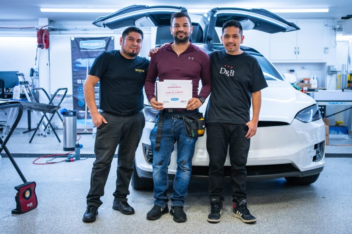 Last month Dr. Beasley’s hosted our first-ever paint protection film installation class led by instructors Christyan Velasquez and Jose Luis Flores with film provided by Onyxhield. Students learned the fundamentals of installing PPF, including the operation of plotting software, paint surface preparation, positioning, contouring, edge wrapping, bubble management and more. At the end of the class students were presented with a certificate of accreditation affirming their completion of the course and we congratulate them on their achievement!