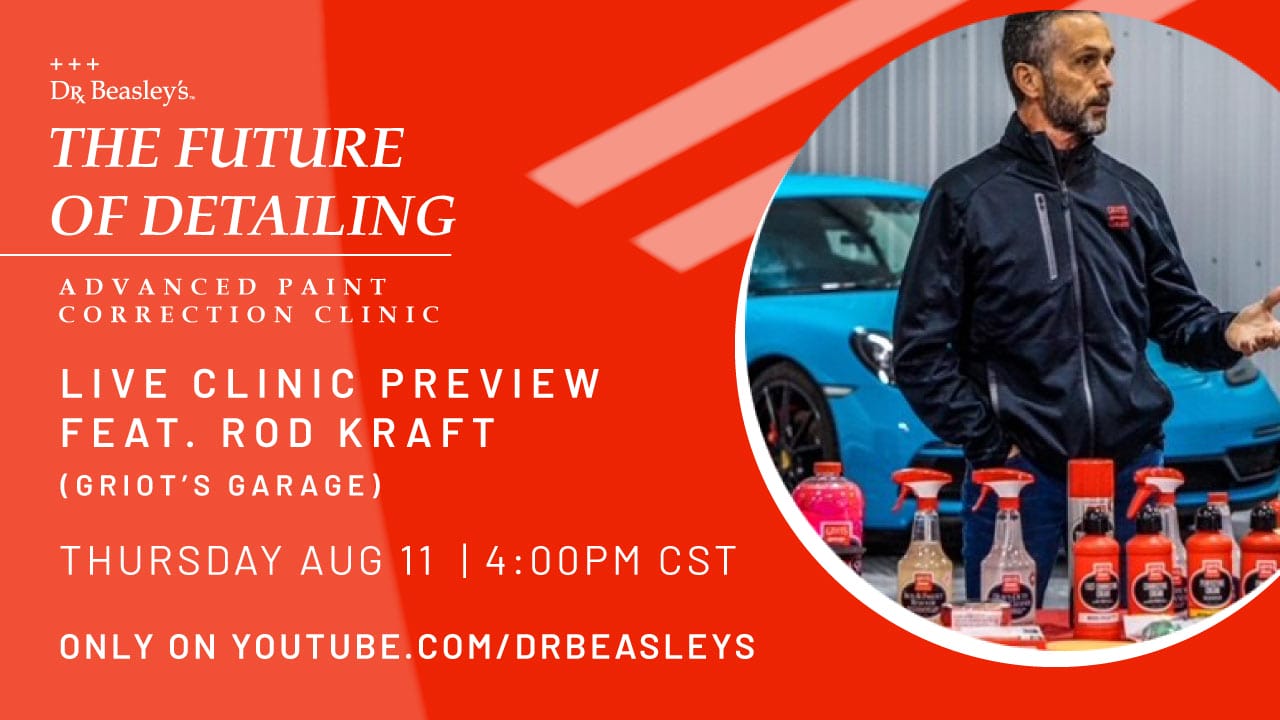 Last week paint correction expert Rod Kraft (Griot’s Garage, formerly Meguiar’s) joined Dr. Beasley’s Director of Success Chris Racana live on YouTube to preview the upcoming “Advanced Paint Correction Clinic” hosted by Dr. Beasley’s at Lake Country Manufacturing HQ this September 29-30! Rod talks about his detailing philosophy and what he thinks industry up-and-comers will get […]