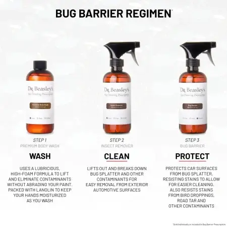 Use to remove insect remains from surfaces like paint, plastic and headlights. Simply spray the remains, let sit for a couple minutes, then wipe clean with a microfiber towel.